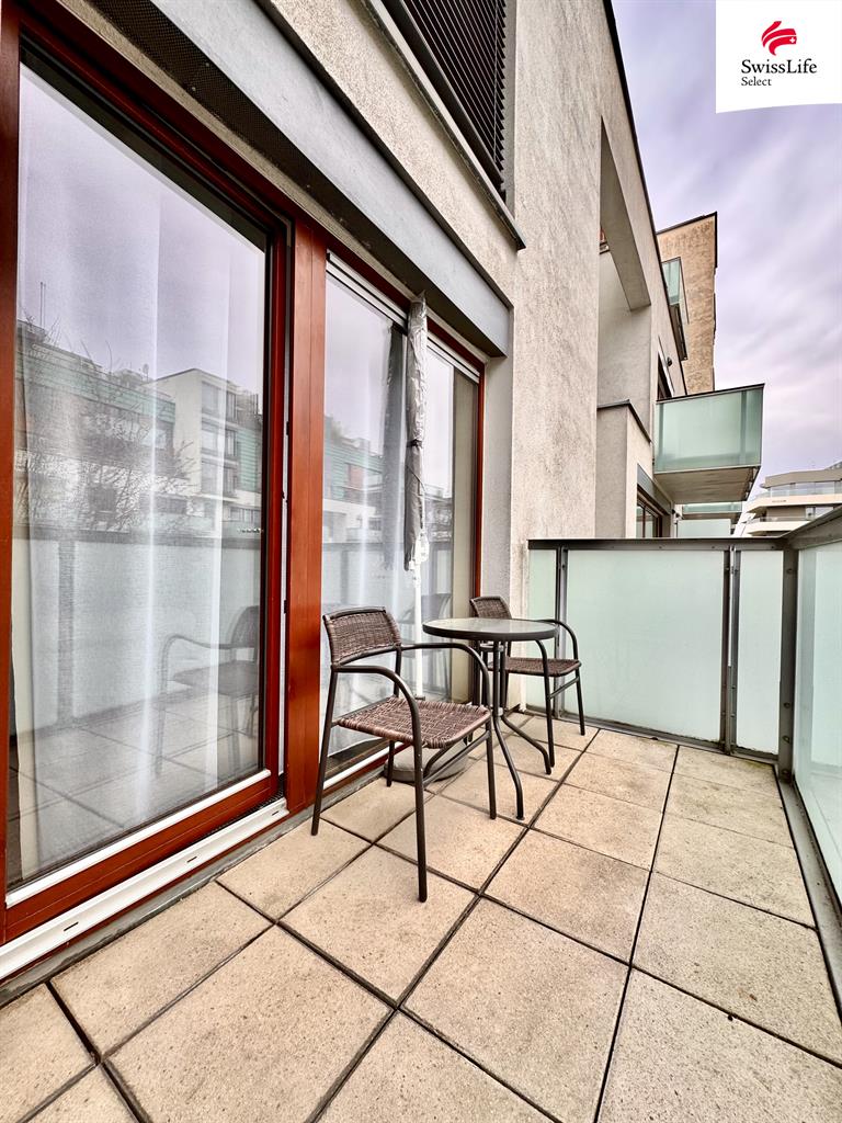 K bytu dále náleží sklepní kóje a součástí nájmu je také garážové stání přímo v domě. V objektu je k dispozici recepce, která zajišťuje komfort i vyšší míru bezpečí pro rezidenty.