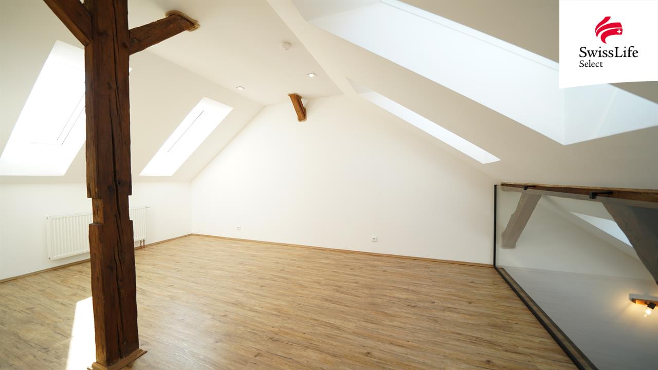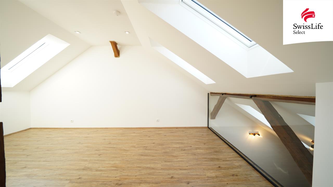 Nadstandardní mezonetové řešení s otevřeným podkrovím, které nabízí další variabilní využití (pracovna, relaxační zóna atd)