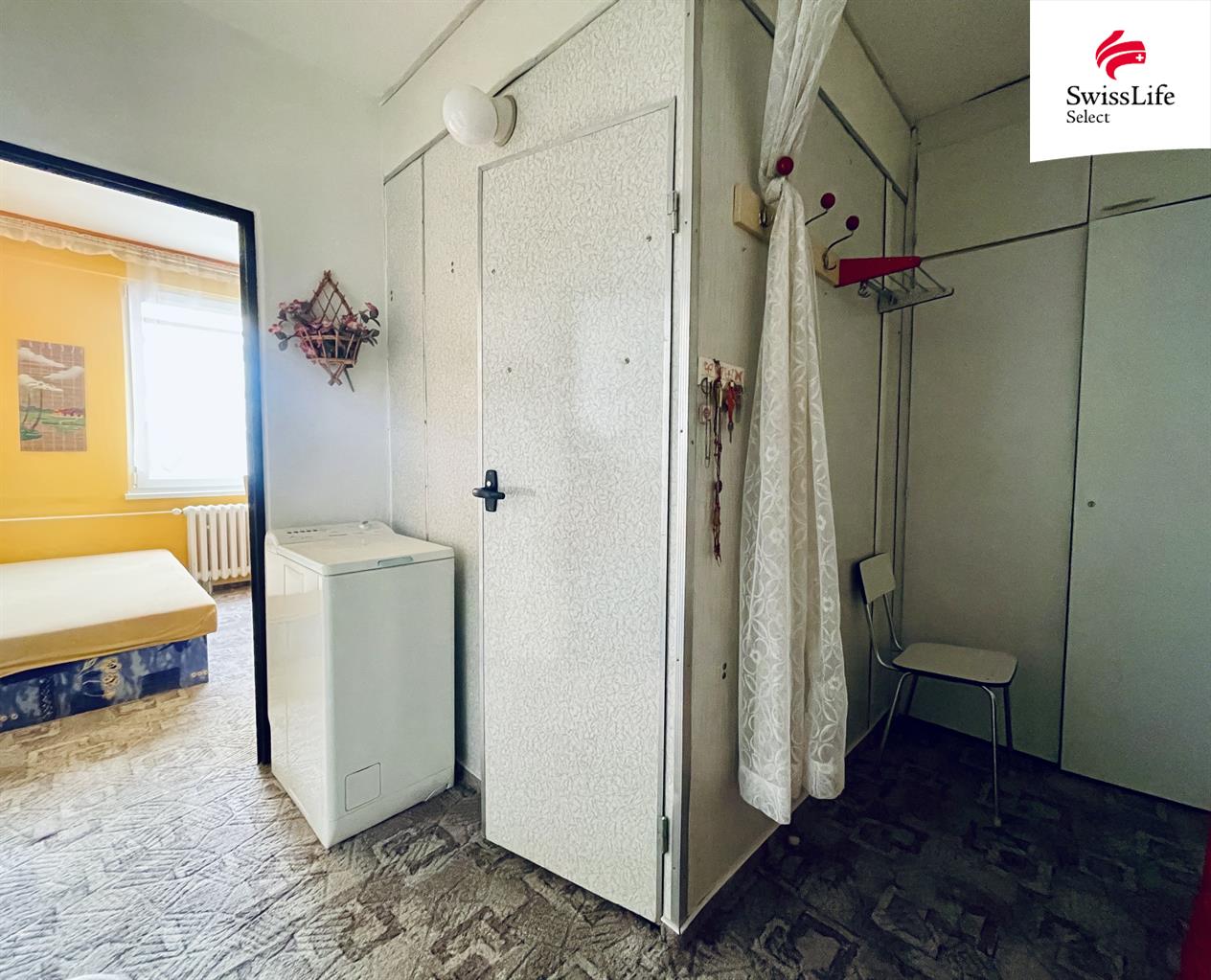 Byt je celkově velmi dobře udržovaný, ale současné trendy nenaplňuje. Vnitřní jádro je ještě umakartové, demontáž tedy nebude komplikovaná. Středovou chodbu lze dispozičně zmenšit, aby se kuchyň či koupelna zvětšila, protože chodba je dostatečně velká. Součástí předsíně je i prostor s vestavnou skříní, takže místa pro rozšíření koupelny či kuchyně je dostatek.