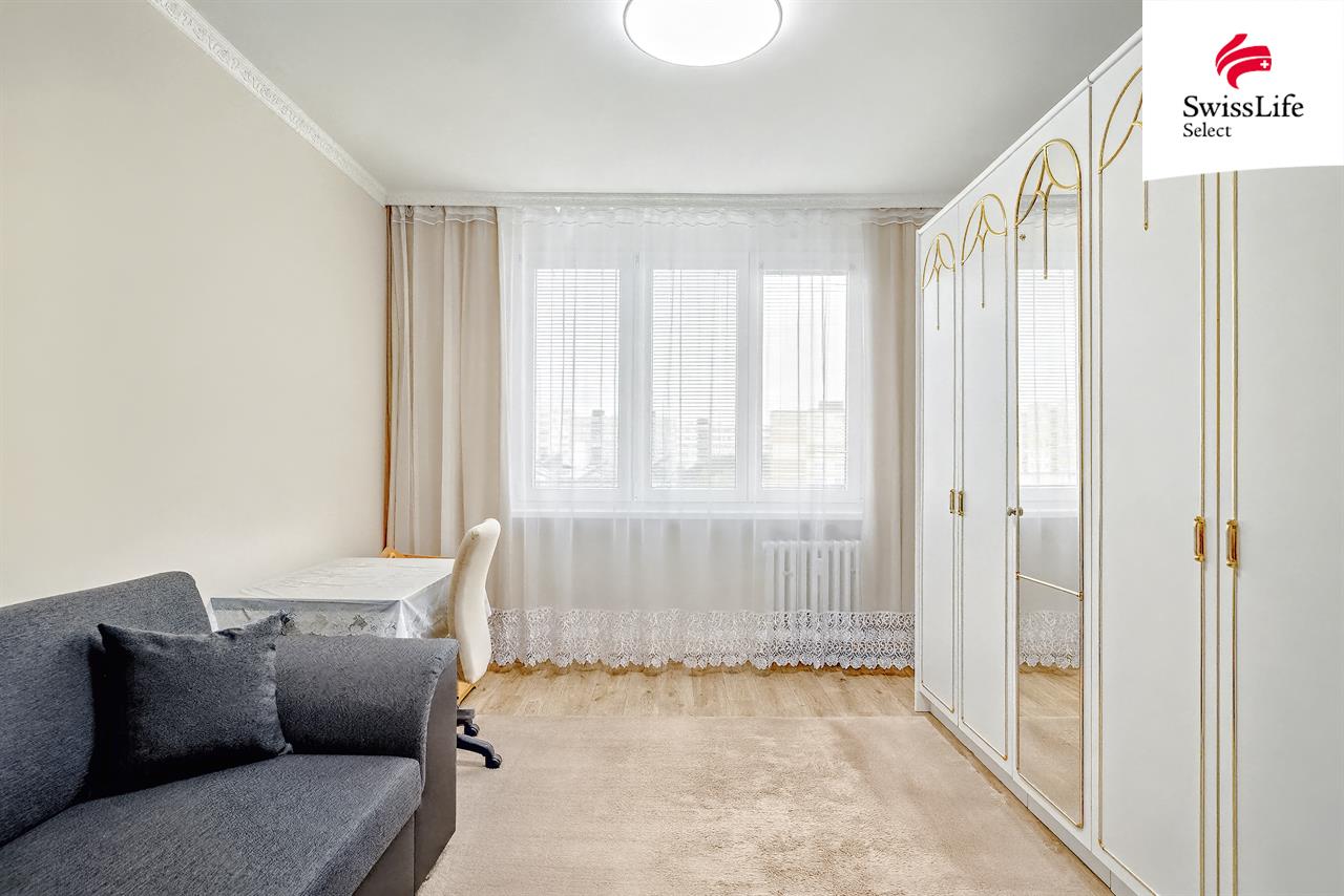 Ať už hledáte nový domov pro sebe nebo chcete spolehlivou investici k pronájmu tento byt je dobrou volbou. Nachází se ve 14. podlaží revitalizovaného panelového domu a díky tomuto umístění nabízí velmi hezký výhled do okolí a dostatek světla.. Byt o dispozici 2+1 a podlahové ploše 52 m² je v původním stavu a Vy tak máte možnost si jej upravit přesně podle svých představ. Byt s jihozápadní orientací má velmi hezké uspořádání s prostornou kuchyní i oběma pokoji. Zajímavá je také vstupní chodba, která se nachází před bytem, je společná pro dva byty a odděluje je od ostatních prostor domu a poskytuje tak ještě více klidu a soukromí. K bytu samozřejmě náleží také sklepní kóje. Byt je v osobním vlastnictví bez jakýchkoliv omezení vlastnického práva a k předání je připraven bezprostředně po vyřízení nezbytných právních formalit. Výhodou jsou také stále nízké provozní náklady a dobře fungující společenství vlastníků. Veškerá potřebná občanská vybavenost je v dosahu, takže vše, co pro život potřebujete, máte na dosah ruky. V okolí je poliklinika, pošta, supermarket i několik mateřských a základních škol. Tramvajová zastávka ( linka č. 2) je vzdálená 300 m, takže ani dopravní spojení není problém. V případě financování koupě prostřednictvím úvěru vám nabízíme možnost vypracování nezávislého porovnání a zařízení hypotečního úvěru na míru dle vašich požadavků a možností. Díky exkluzivním podmínkám u finančních institucí, perfektní znalosti trhu a kvalitnímu klientskému servisu si můžete být jisti, že vám doporučíme nejvhodnější financování. Swiss Life Select klientům poskytuje poradenské služby na nejvyšší úrovni v oblasti finančního plánování, investování, správy majetku, finančního zajištění na stáří, pojištění či financování bydlení.