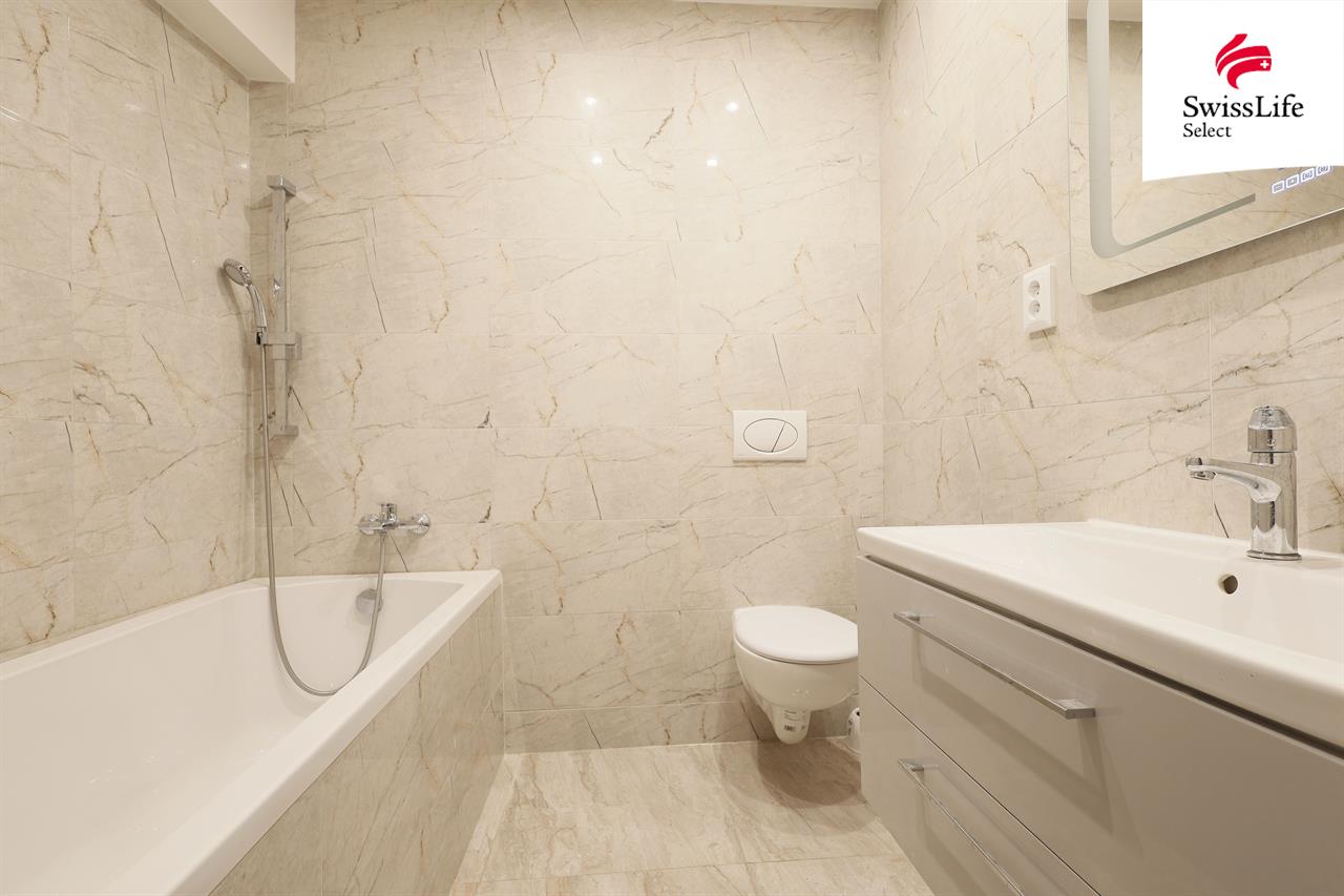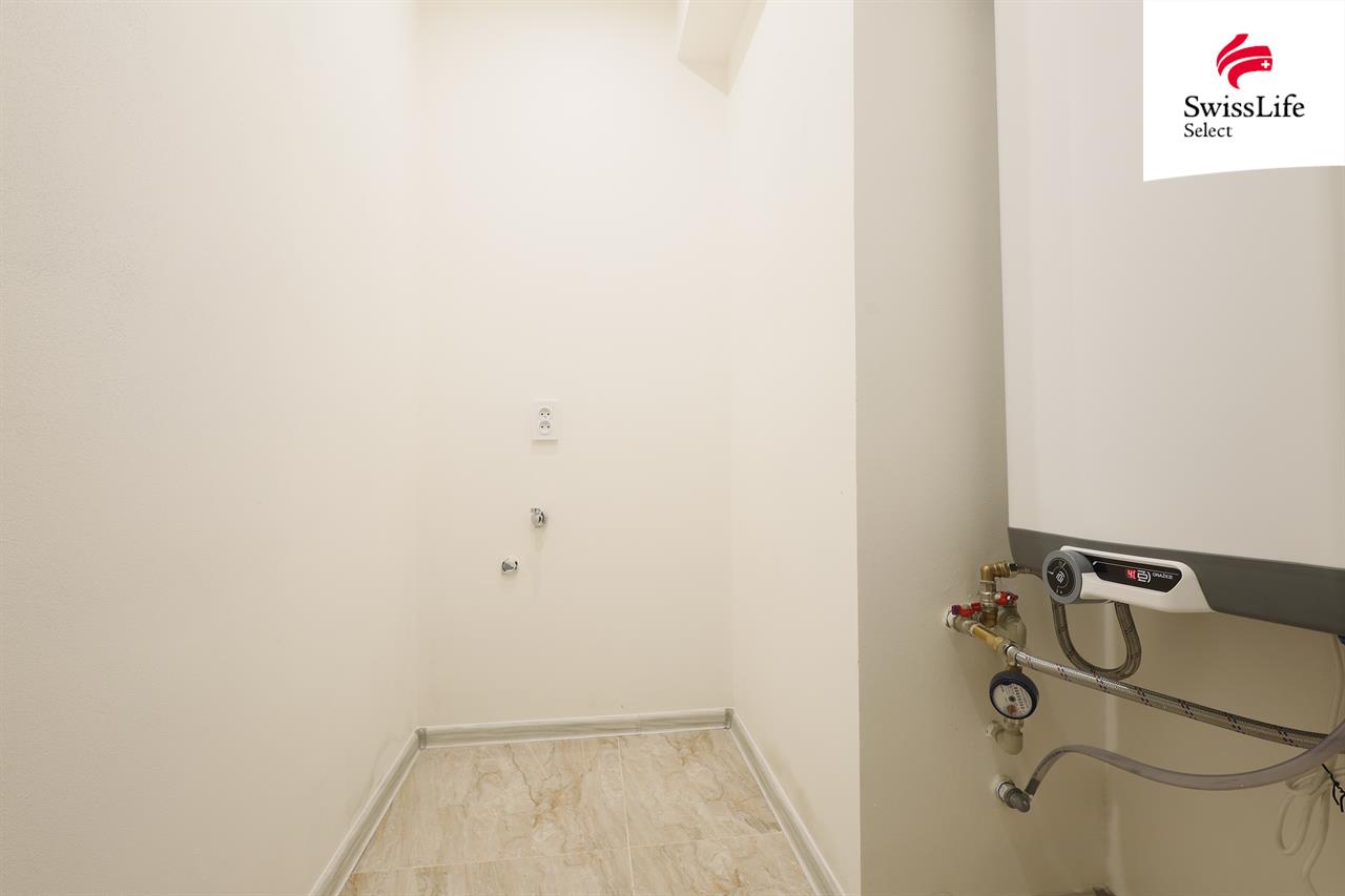 Interiér působí velmi moderně a útulně – nová kuchyňská linka, el. vyhřívané podlahy, dveře, rozvody, koupelna i veškeré povrchy. Dispozice 2+kk poskytuje dostatek prostoru pro pohodlné bydlení jednotlivce, páru či menší rodiny. Součástí tohoto bytu je navíc sklepní prostor pod schody v přízemí.