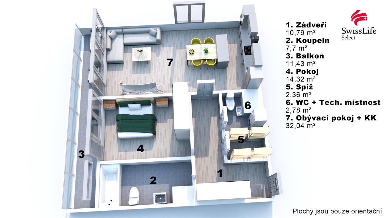 • podlahová plocha bytu 66,09 m² (bez započítání balkonu a sklepa)