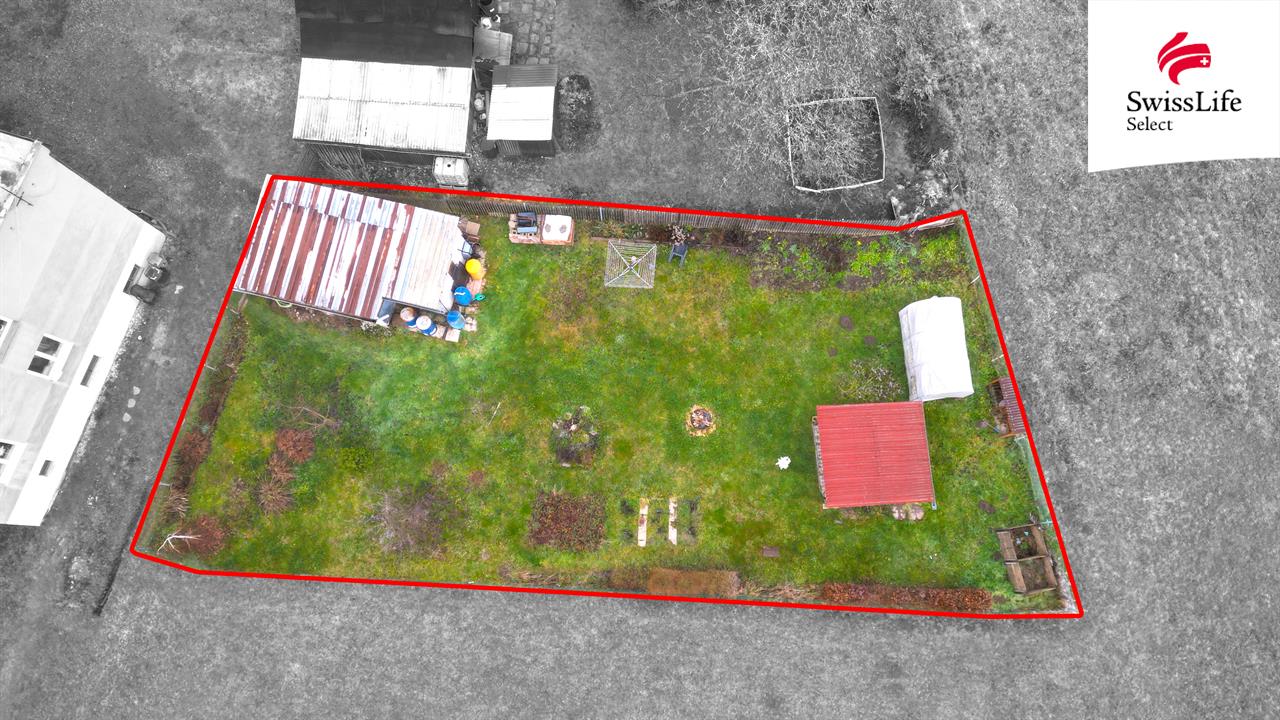 Zahrada je oázou klidu, kde si můžete užívat volné chvíle v soukromí a na čerstvém vzduchu. Nabízí několik druhů ovocných stromů, pergolu, která je ideální pro letní posezení a zahradní domek, jež je praktickým úložným prostorem.