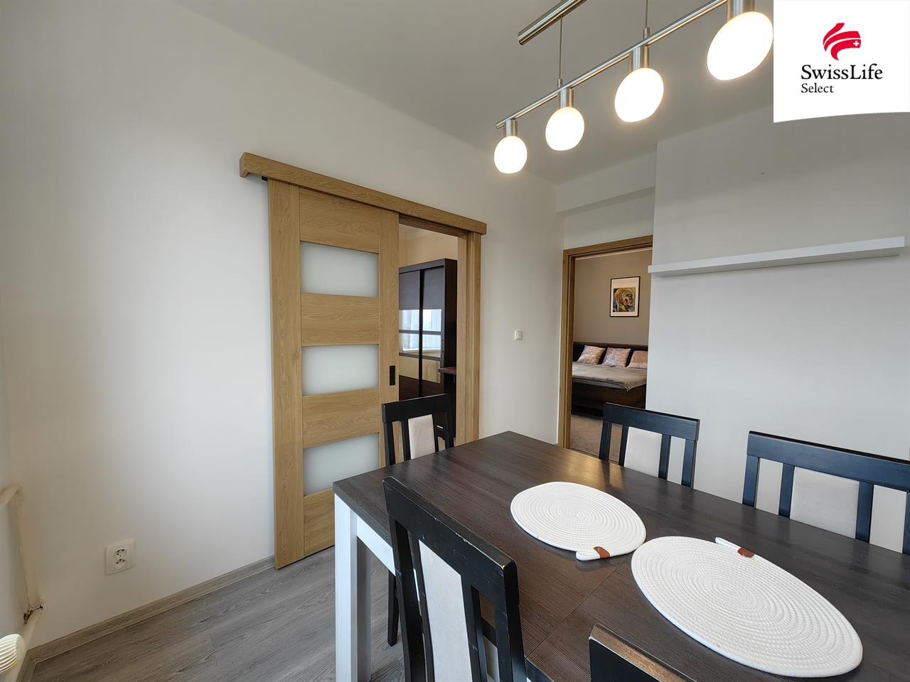 Byt je ideálně dispozičně řešený a nabízí velkorysý prostor pro pohodlné bydlení. Srdcem bytu je kuchyň s jídelním koutem, která je vybavena kuchyňskou linkou. Obývací pokoj je příjemně prostorný a vybavený moderní sedací soupravou. Ložnice je kompletně zařízená a nabízí ideální místo pro odpočinek.