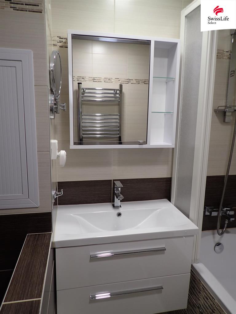 Bytová jednotka je ve velmi dobrém stavu. Byt se skládá z předsíně, kuchyně a tří pokojů, z nichž jeden má přístup na lodžii. Zrekonstruovaná koupelna je vybavena vanou, umyvadlem a společným WC.