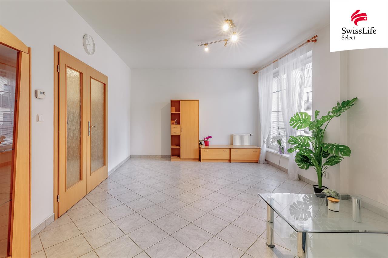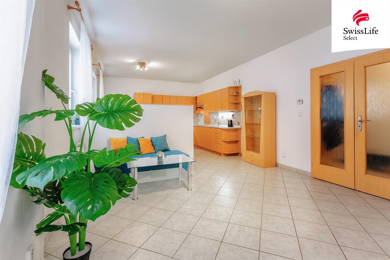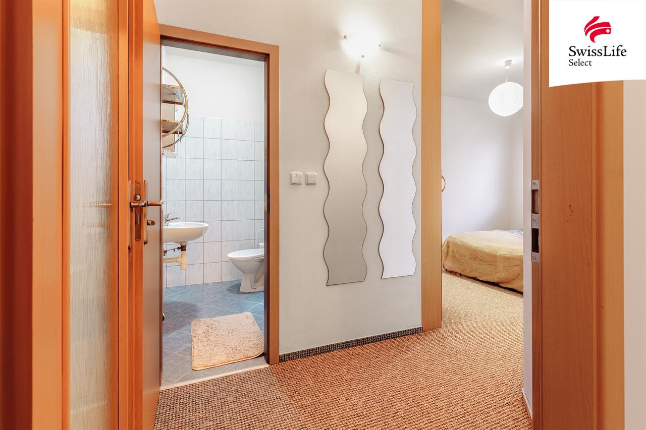 Na první pohled Vám zaujme nadstandardně prostorný obývací pokoj s kuchyňským koutem o výměře 34,8 m² - srdce domova, kde je místo pro celou rodinu. Další velkou předností tohoto bytu jsou dvě koupelny. Ta hlavní slouží celé domácnosti a je vybavená vanou, zatímco druhá se sprchovým koutem je přístupná přímo z ložnice a nabízí majitelům klid a soukromý prostor jen pro sebe. Kromě ložnice je zde také další pokoj a prostorná předsíň, která je stejně jako ložnice vybavená vestavěnou skříní. Byt zůstane vybavený lednicí, kuchyňským stolem se židlemi, šatní skříní v pokoji, skříňkami v obýváku, botníkem a konferenčním stolkem.