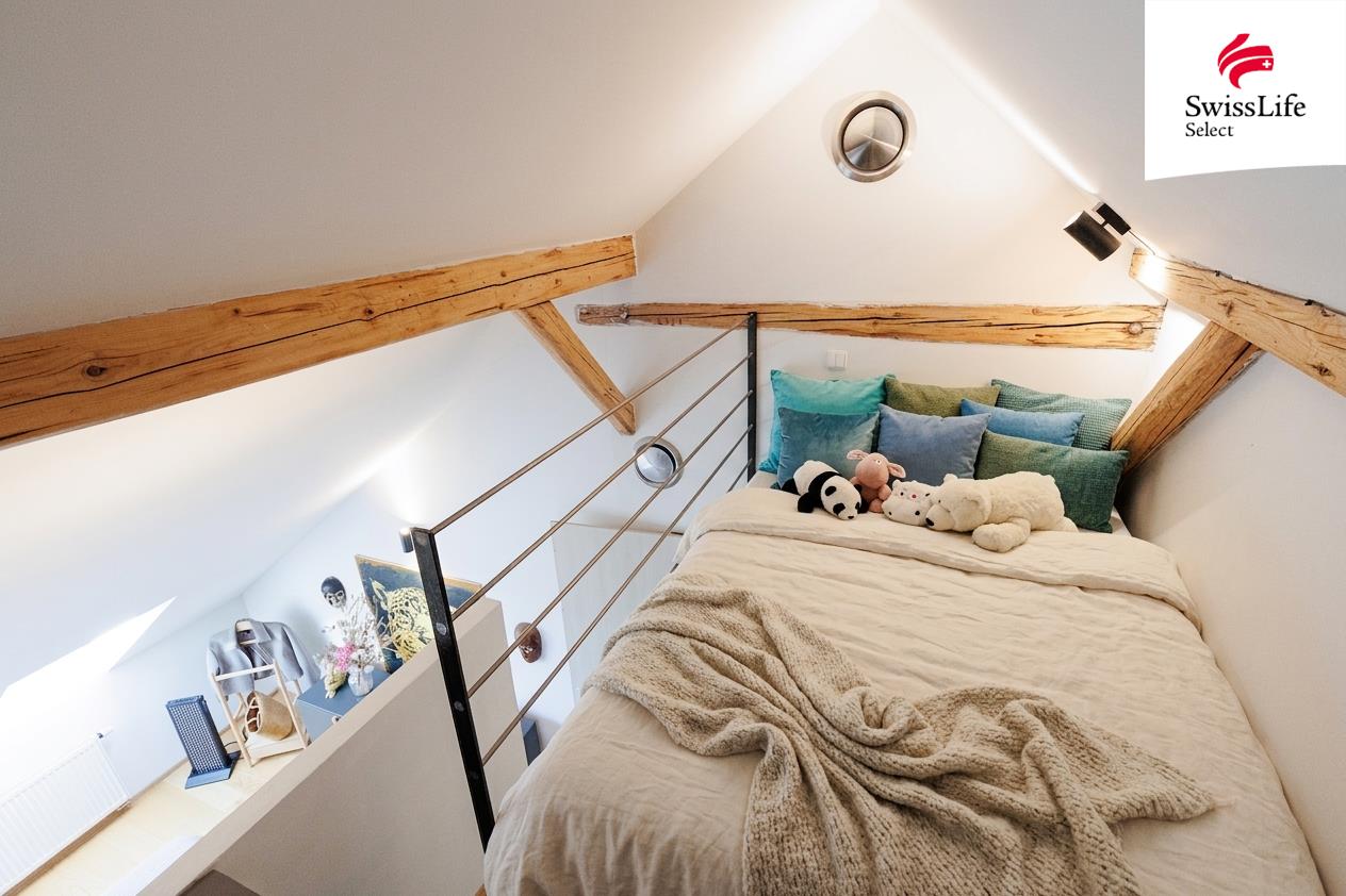 Vestavěná galerie (mezipatro) nad ložnicí – architektonicky řešený prvek, který přináší soukromí i charakter prostoru