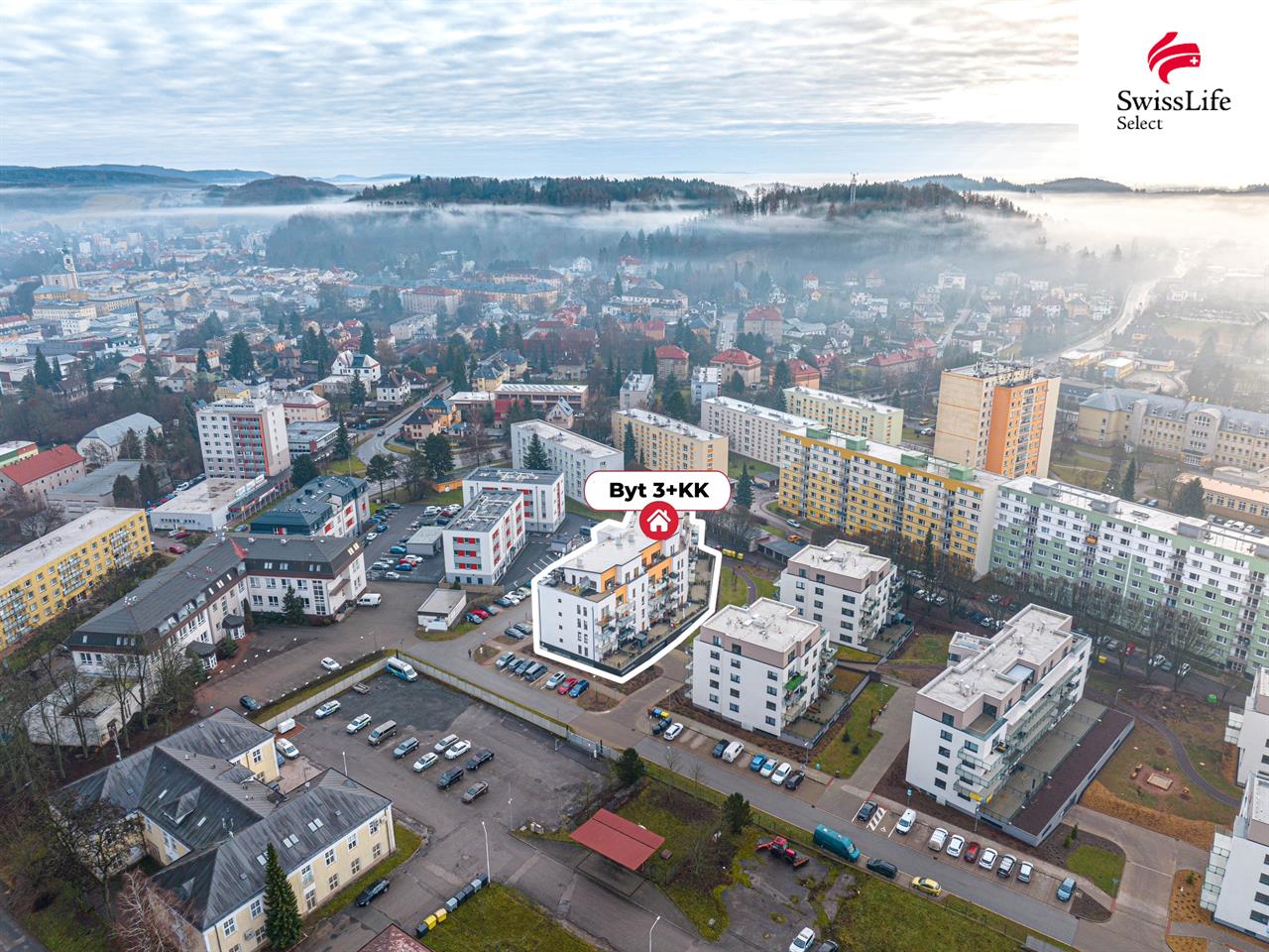 Dispozice: vstupní chodba s vestavnými skříněmi, světlý obývací pokoj s novou kuchyňskou linkou a vstupem na balkon, ložnice, dětský pokoj, koupelna, samostatné WC a šatna. K bytu náleží také sklep 3,3 m² a vlastní parkovací stání v suterénu domu.