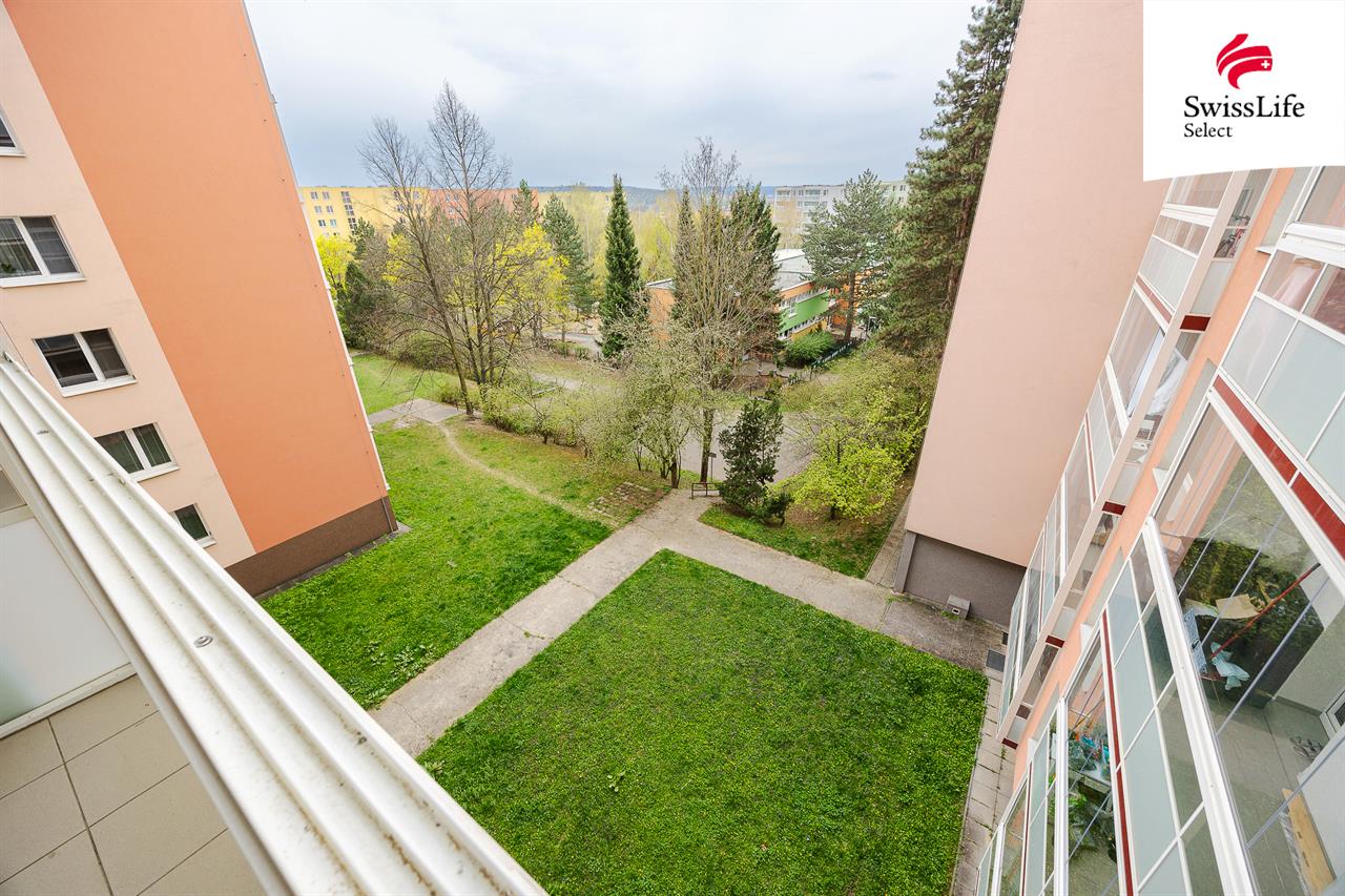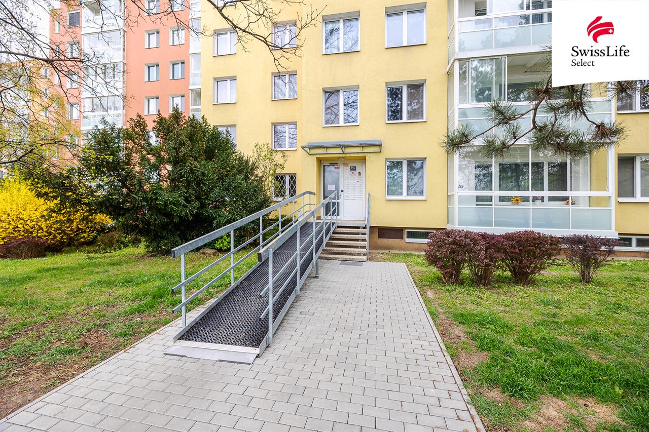 Byt se nachází ve 4. nadzemním podlaží domu s výtahem a díky orientaci na všechny čtyři světové strany je interiér příjemně prosvětlený v průběhu celého dne.