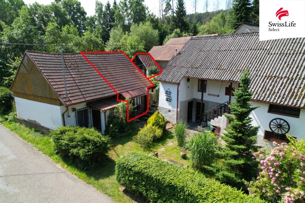 Exkluzivně nabízíme dvě chalupy v lese nad potokem – okraj osady Břišejov u Sedlčan s vlastním pozemkem 1568 m2.