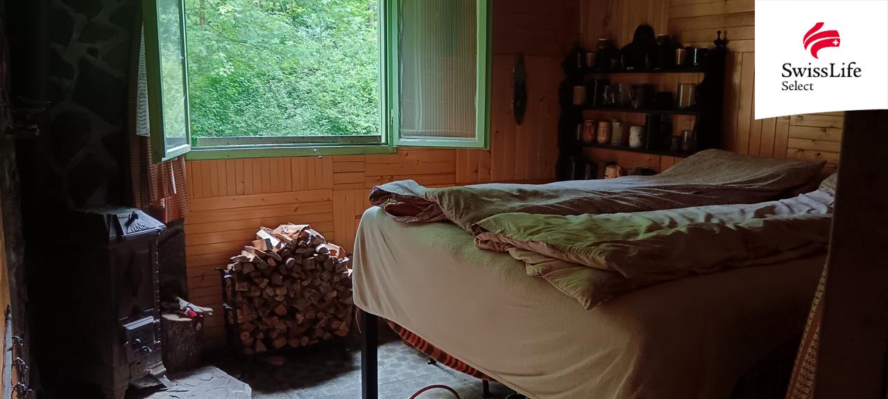 abízíme k prodeji udržovanou dřevěnou chatu o zastavěné ploše 60 m² v nádherném lesním prostředí v katastrálním území Mostov, část obce Odrava (okres Cheb). Chata stojí na pronajatém pozemku od Lesů ČR o výměře 205 m² – pronájem zahrnuje jak plochu pod chatou, tak prostor kolem ní, včetně příjezdové cesty.