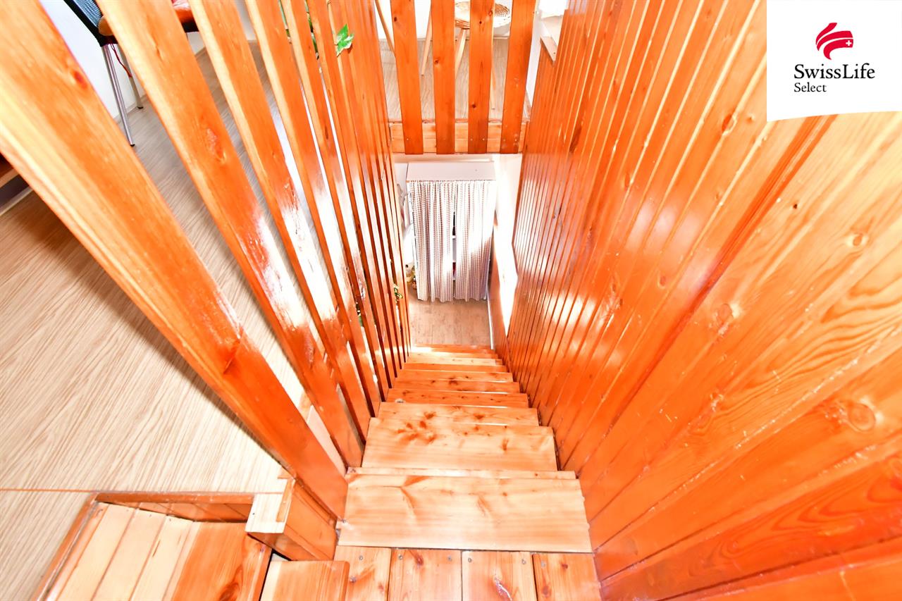 Pozemek pod a okolo chaty je v OV a je součástí prodeje – 582 m2. Zastavěná plocha je 61 m2 a užitné plocha je 48 m2 v přízemí plus zastřešené veranda a cca 38 m2 v podkroví. Celá chata je zděná z cihlového zdiva se sedlovou plechovou střechou. V přízemí je jeden velký prostor – pokoj s kuchyňským koutem, chodba a sociální zařízení. Do patra jsou dřevěné schody a dva pokoje. Chata byla postavena cca v r. 1970. Na pozemku je ještě dřevěné kůlna (22 m2).