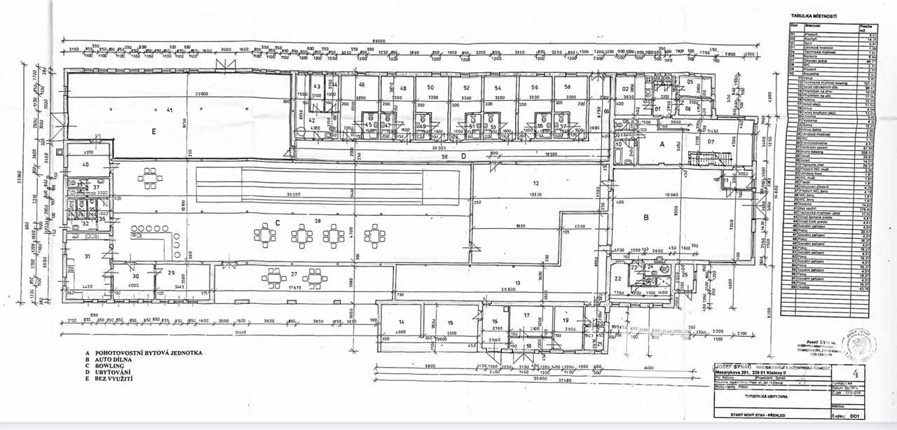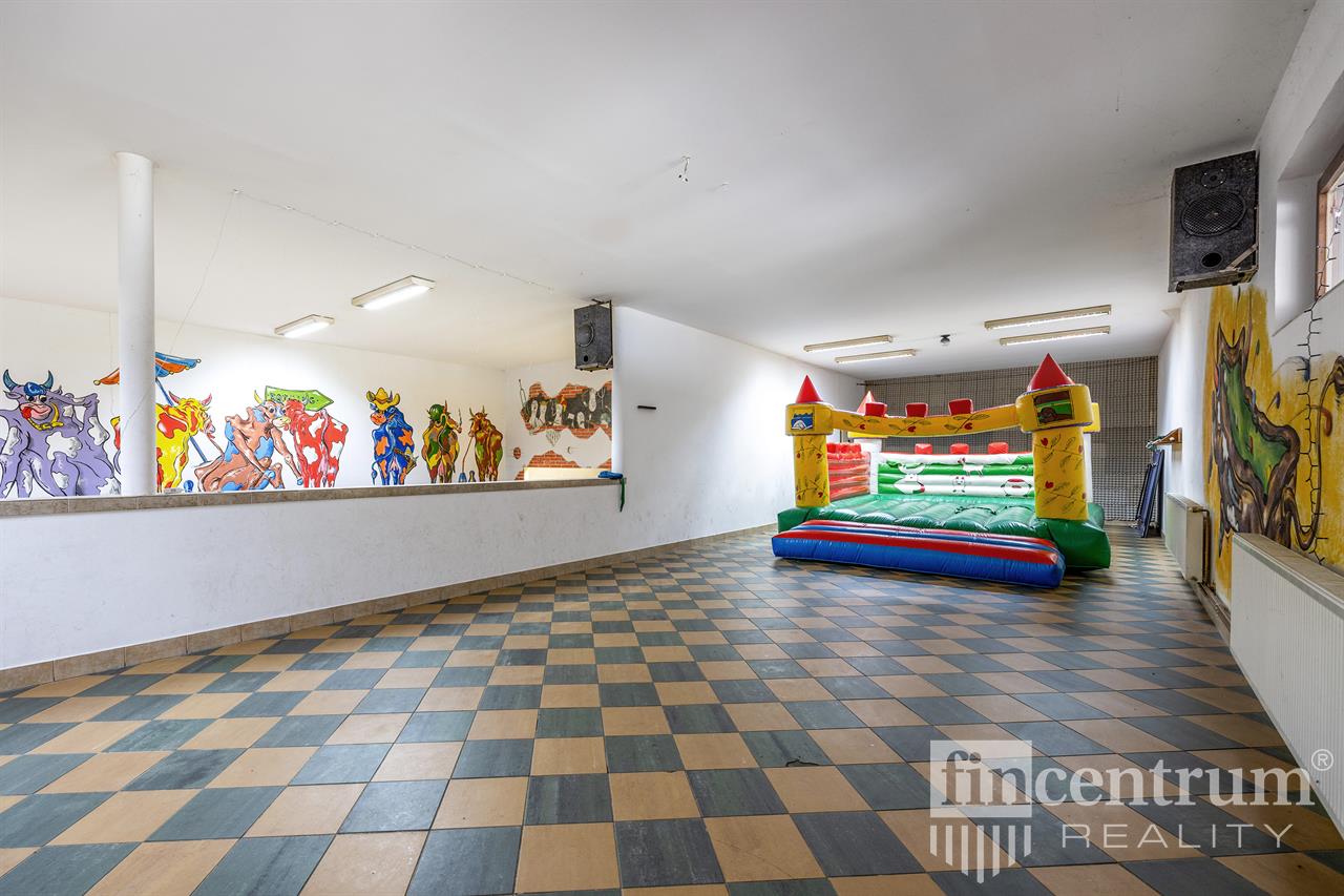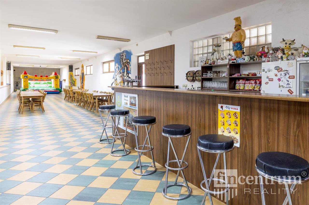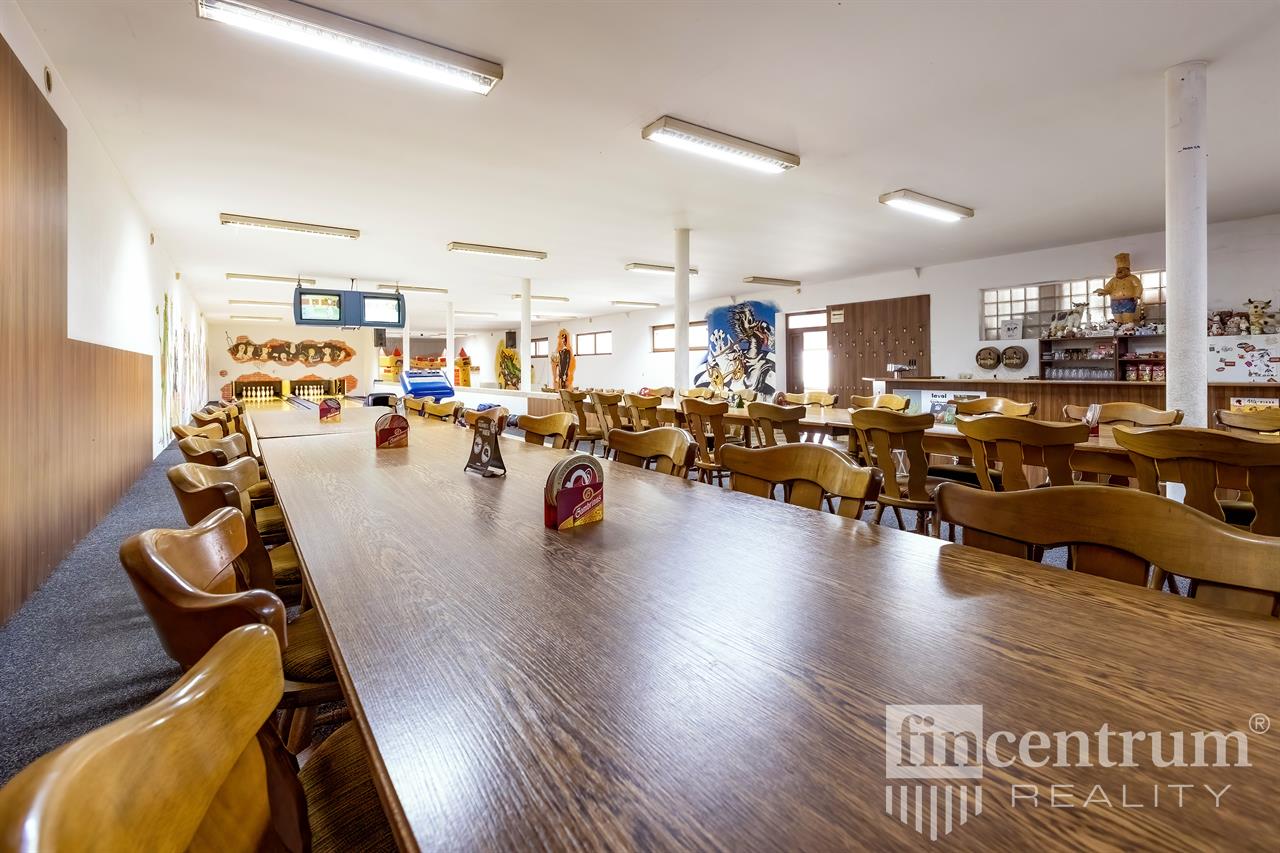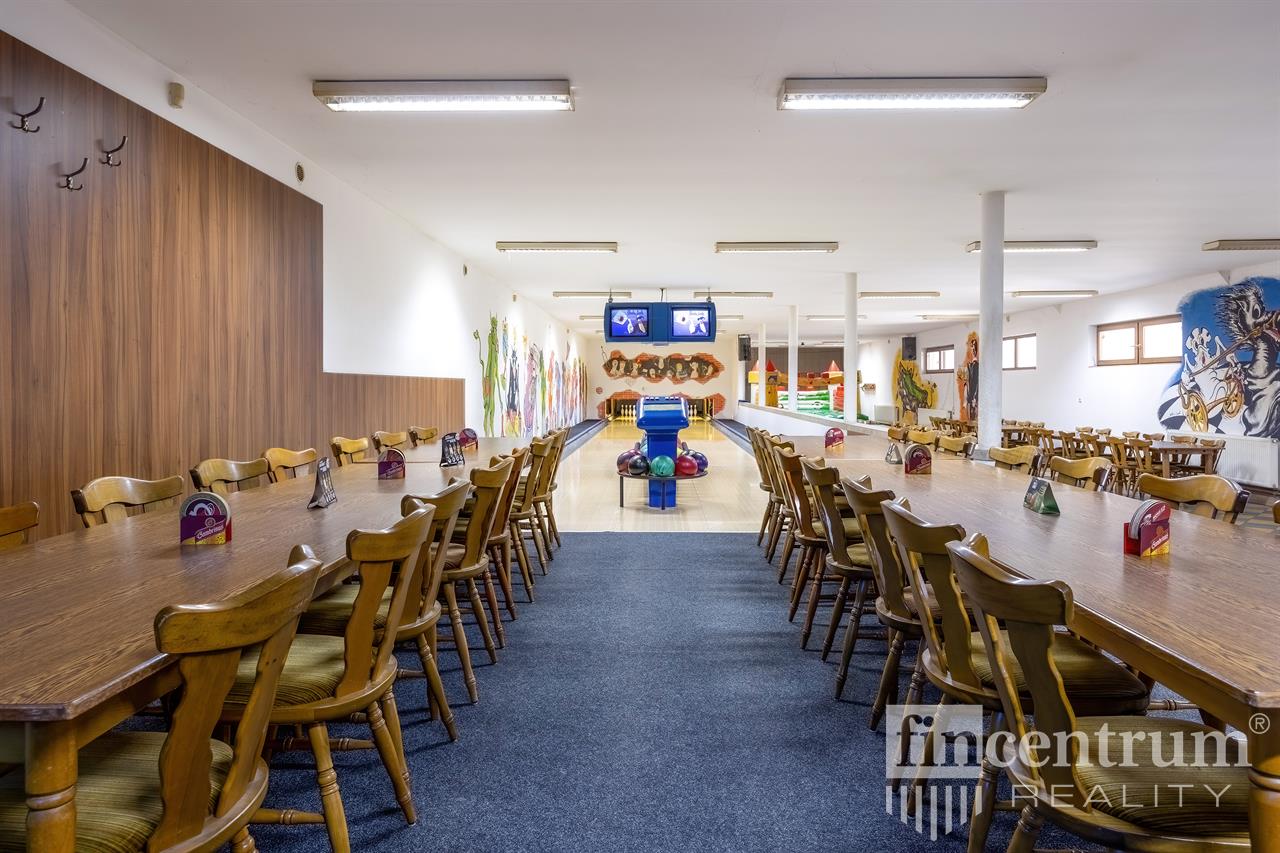 Nabízíme k prodeji zavedený bowlingový bar s kuchyní a zázemím k restauraci na více jak 600 m2, dále mezonetovou bytovou jednotkou cca 150 m2. Dříve v areálu také autodílna se zázemím - cca 80 m2. Momentálně se areál využívá jen k provozu bowlingu+restaurace a bydlení v přilehlém mezonetovém bytě. V areálu dalších cca 700 m2 nevyužívaného prostoru. Celková zastavenost objektu 1698 m2.