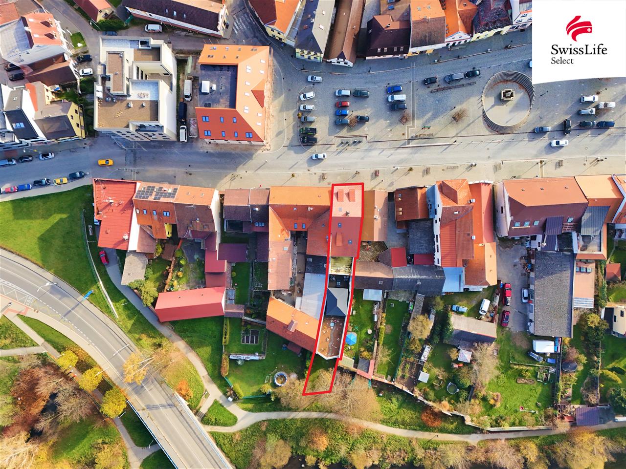 Nezanedbatelnou předností polohy domu je bezplatné parkování na náměstí.