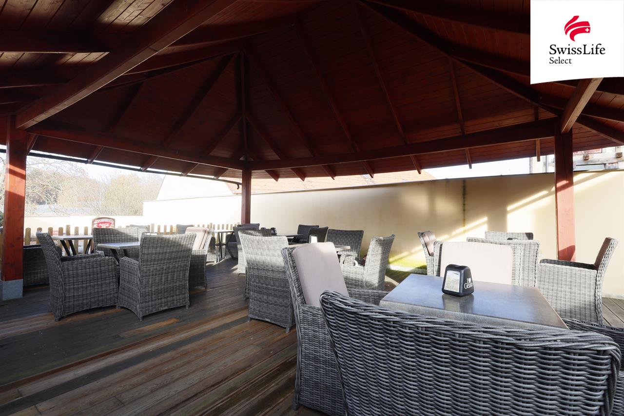 A to není všechno. Ze salonku je vstup na velkorysou terasu o ploše 167 m², která je upravena v japonském stylu a je zde prostor pro dalších dvacet čtyři hostů.