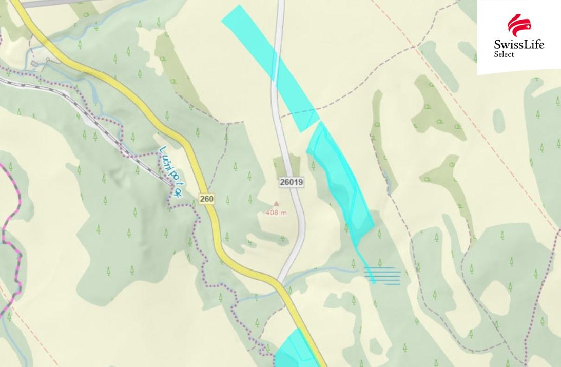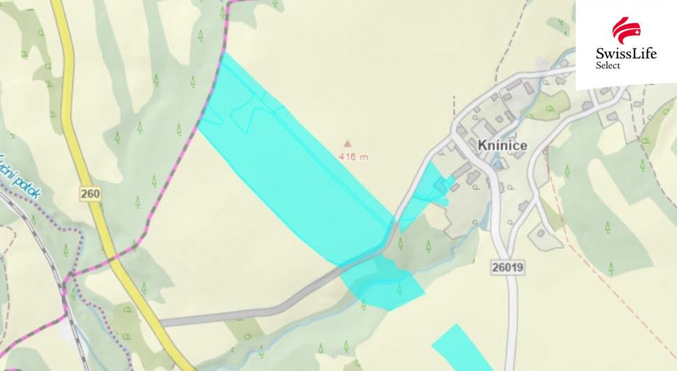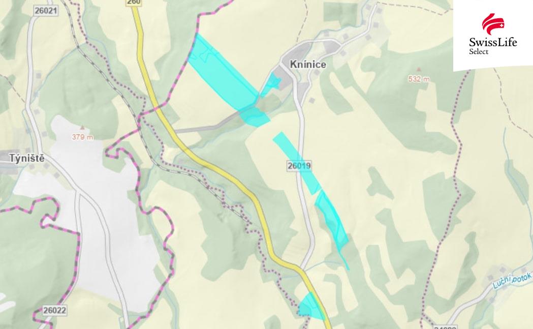 Prodej souboru pozemků v katastrálním území Knínice u Touchořin, celkově se jedná o 130.023 m2.