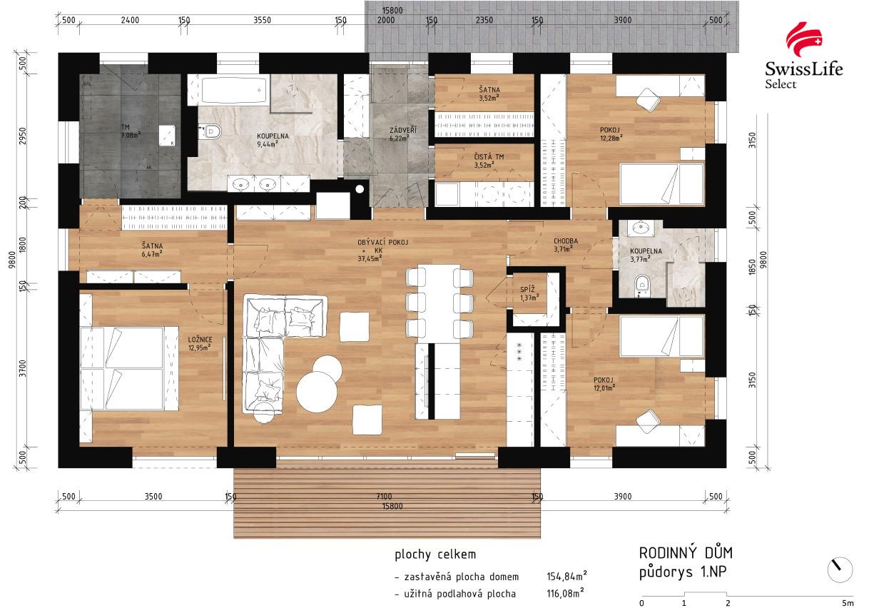 | Užitná plocha: 116 m2 | Pokojů: 4 Číslo zakázky: 23465 |