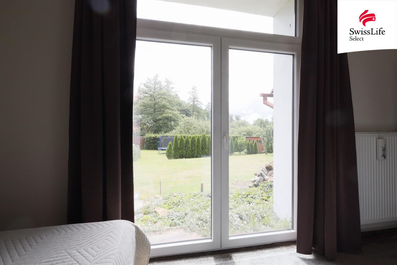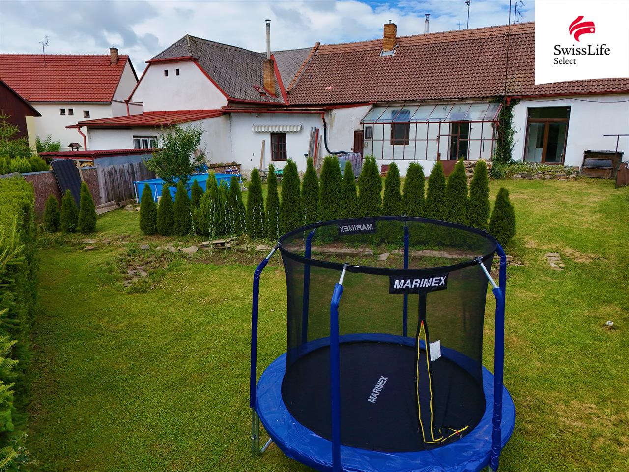 Na dům navazuje prosklená veranda se vstupem do sklepa. K odložení momentálně nepotřebných věcí slouží samostatná velká místnost přístupná ze zahrady. Zahrada je dostatečně velká jak pro odpočinek, tak aktivity dětí, pěstování zeleniny nebo výběh pro psa.