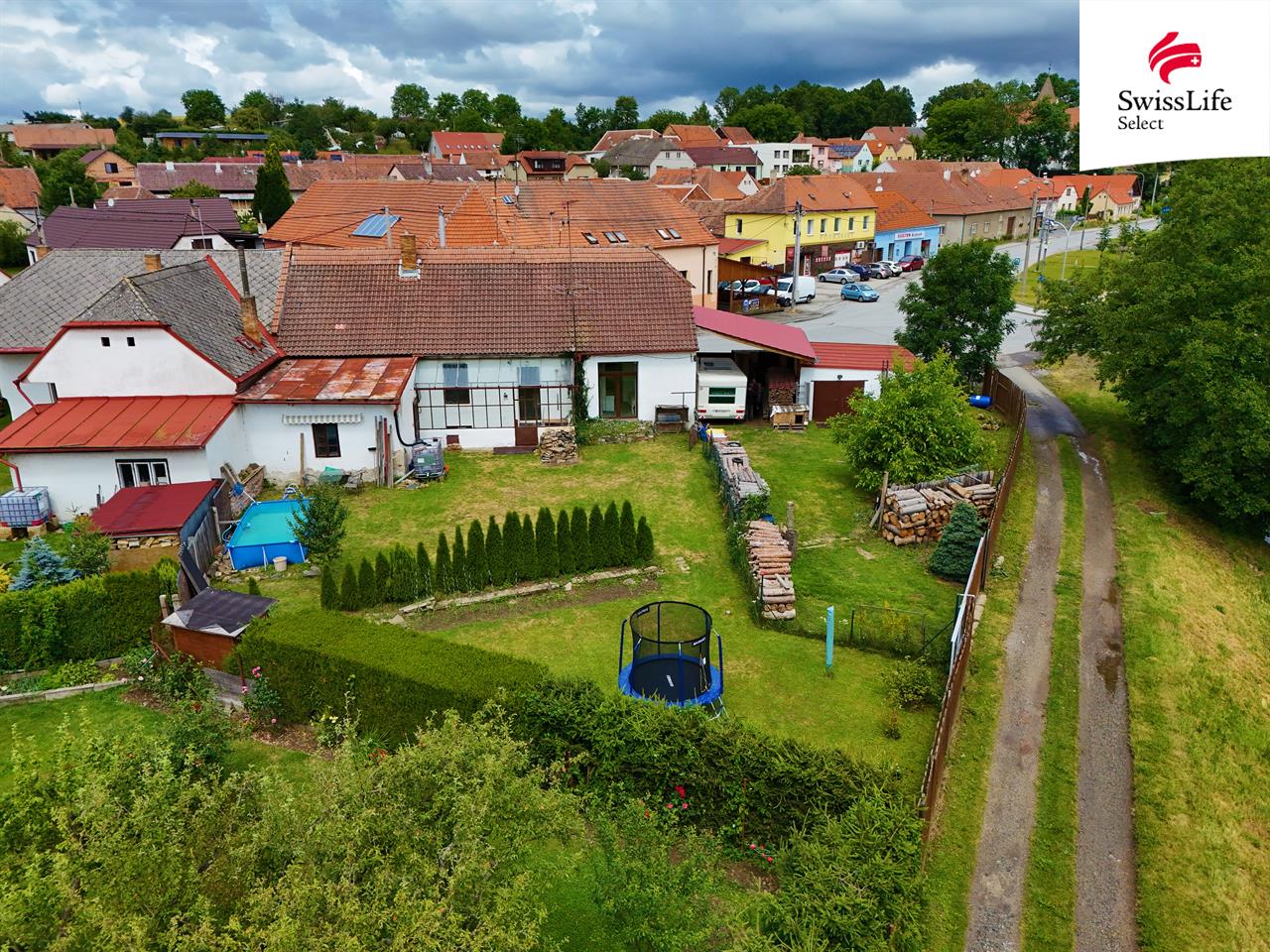 K domu patří zázemí v podobě garáže a dalšího krytého garážového stání, kam se vejde i obytný přívěs za auto.