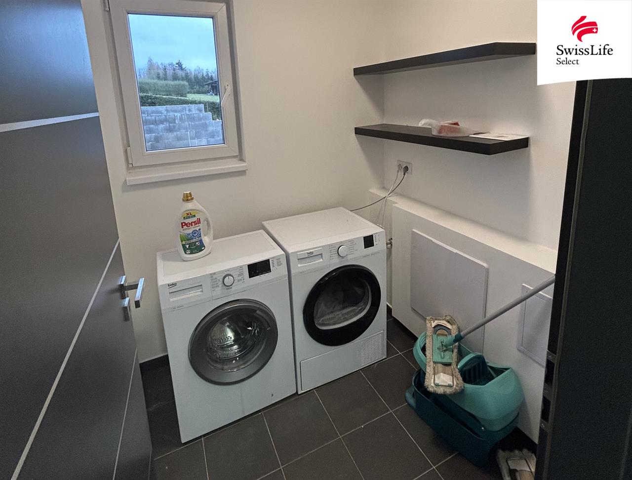 Dům disponuje dvěma koupelnami, přičemž jedna je přímo součástí pokoje, což zajišťuje maximální komfort a soukromí. Prostorný obývací pokoj s terasou a krbem je to co člověk potřebuje.