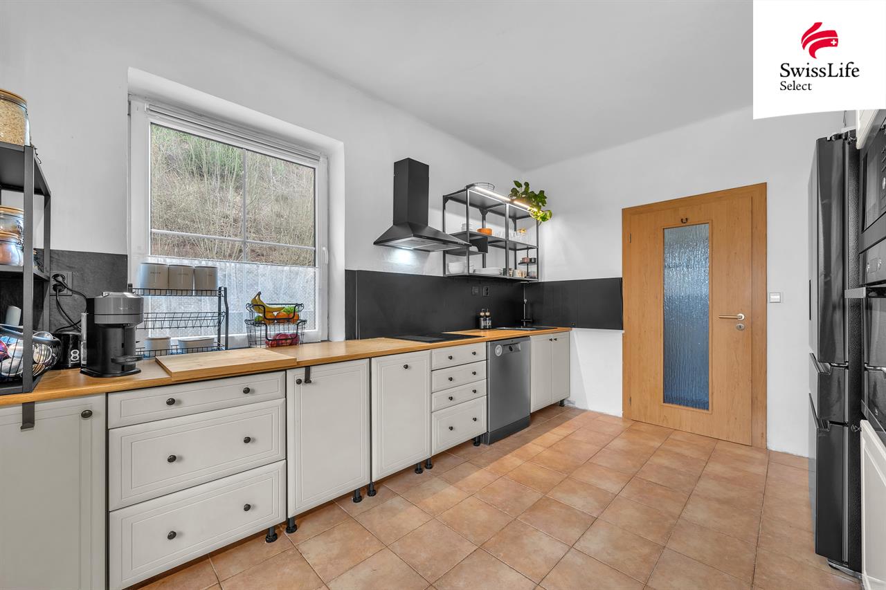 Na hranici pozemku protéká potok (s vysokým břehem – bez historických povodňových událostí) Důležité: Nemovitost je standardně pojištěna včetně rizika povodně, pojišťovna s umístěním domu počítá a nijak neomezuje běžné pojistné krytí.