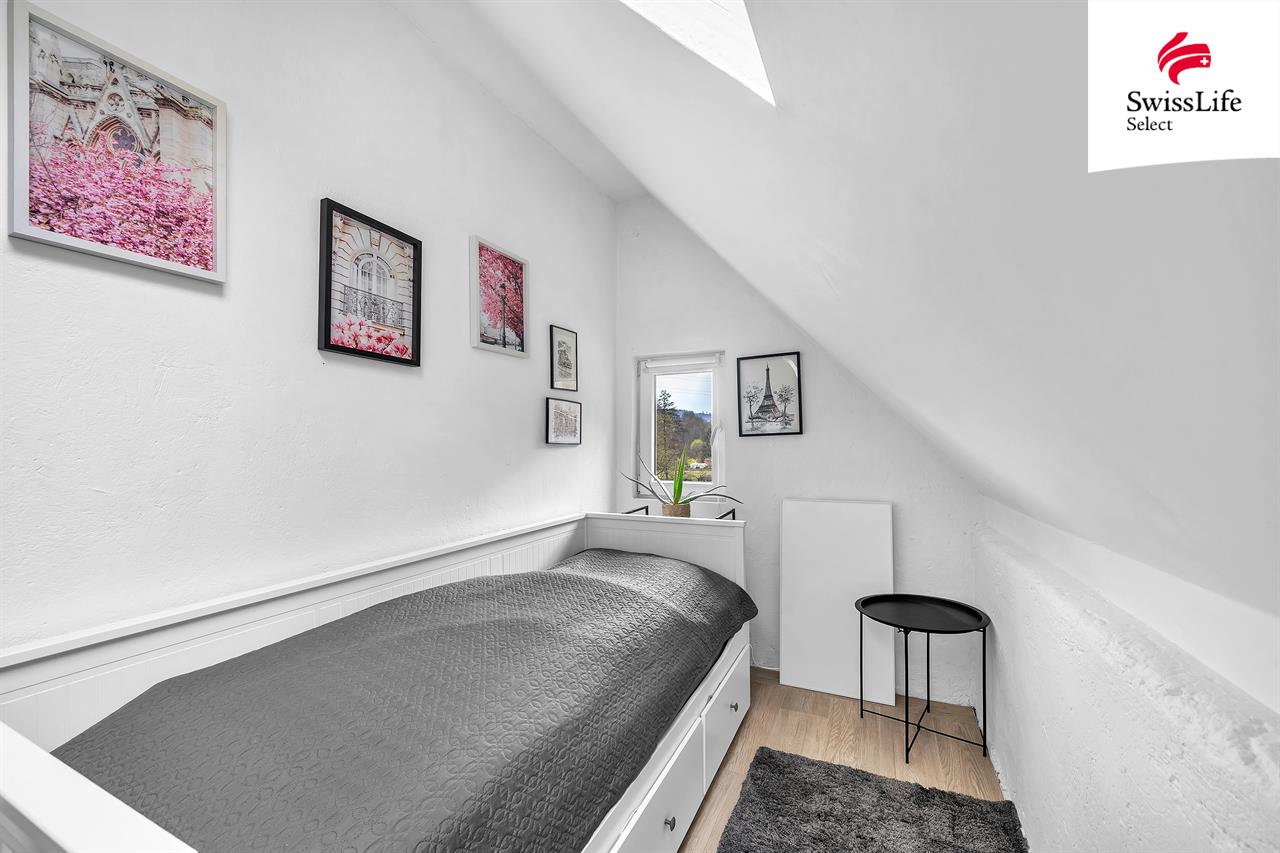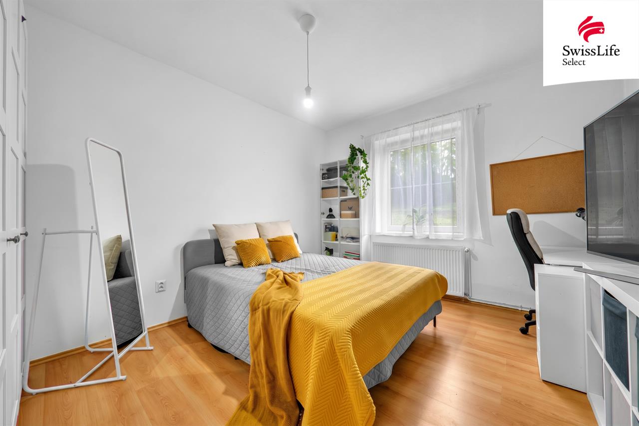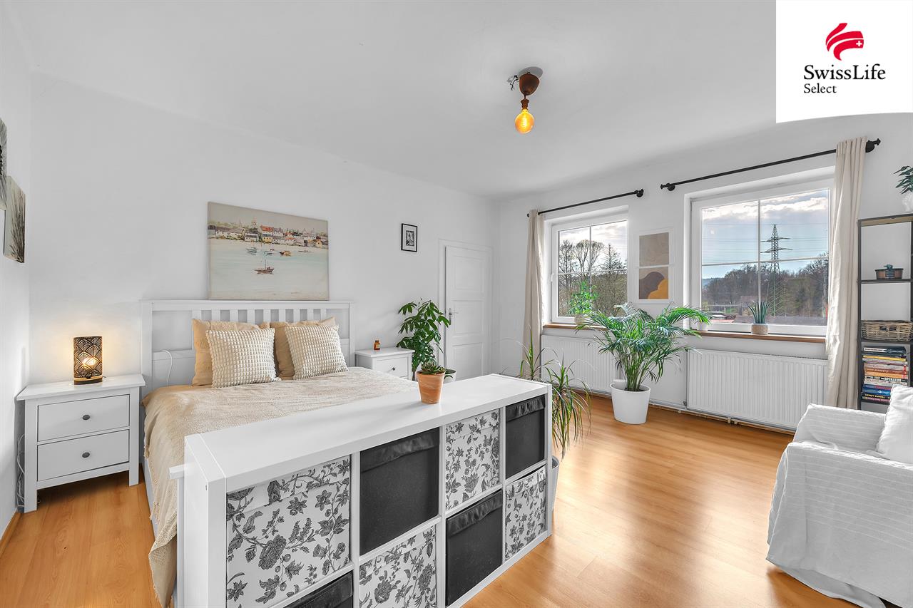 - menší pokoj (dnes ložnice, potenciál- pracovna / hosté)