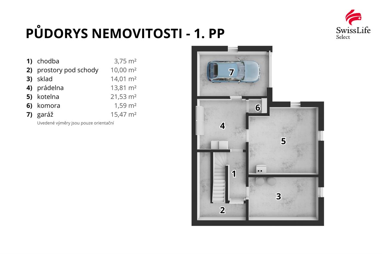 - suterén (sklep, kotelna, sklad, technická místnost/ dílna)