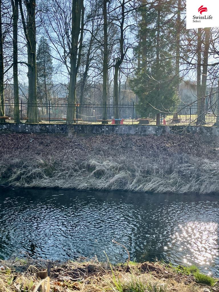 Velkým benefitem je zahrada s novou pergolou v přímé blízkostí řeky Metuje. Od plotu je to jen kousek přímo k břehu, atmosféra je kouzelná. Relax, který zahrada s řekou nabízí, činí z tohoto místa jedinečnou možnost bydlet moderně v centru Hronova, přitom uprostřed přírody. K dispozici je studna pro zajištění vody do bazénu i na zalévání. Vyvýšené záhony, skleníky, keře i ovocné stromy - to vše bude mít dostatek místa i slunce.