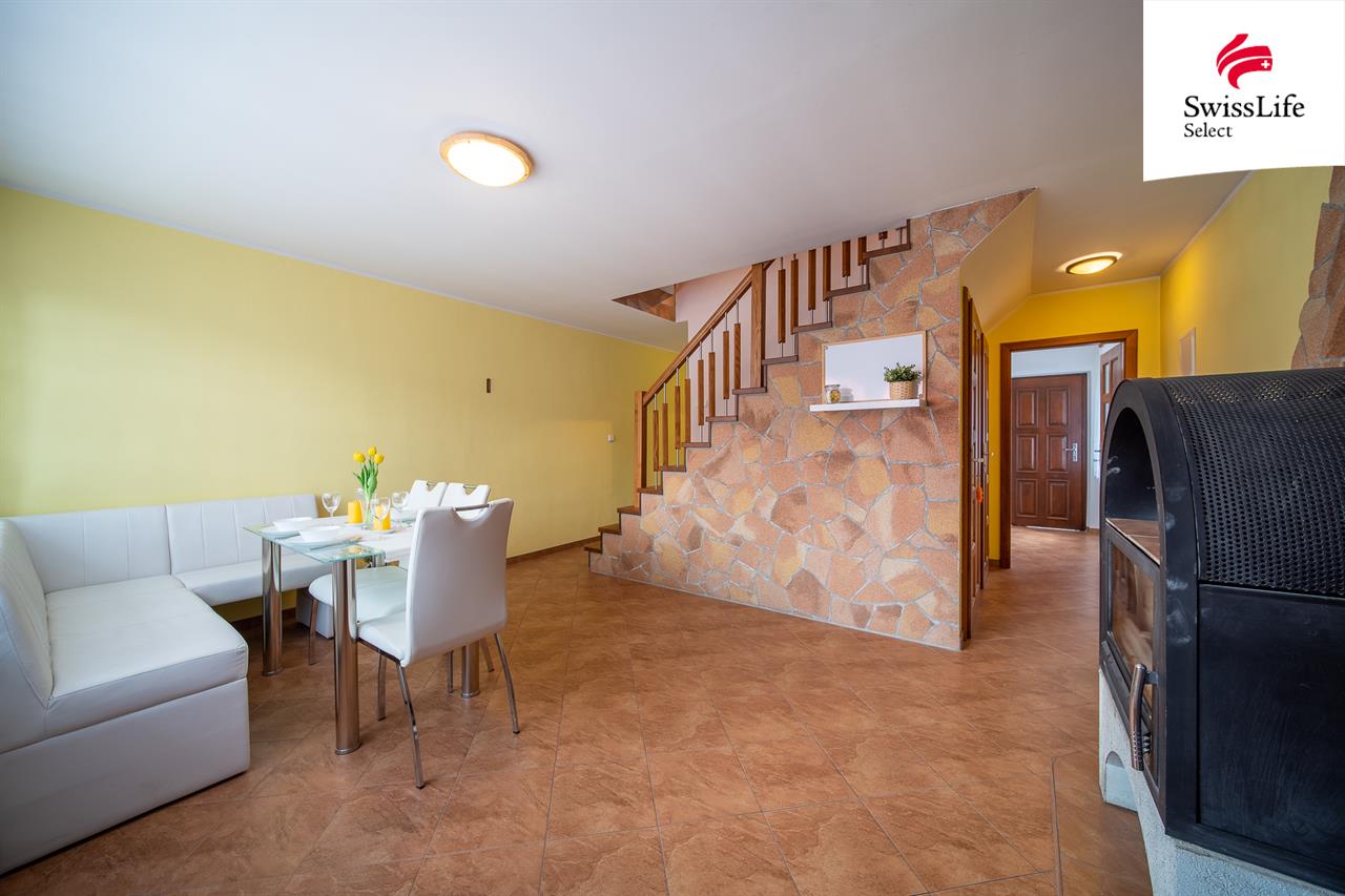 Vytápění zajišťuje elektrokotel a krb s teplovodním výměníkem, který je napojen na rozvod do všech místností, což umožňuje efektivní a úsporný provoz během topné sezóny. Dům má novou fasádu, kompletní zateplení a klimatizaci, je průběžně udržovaný a ihned obyvatelný bez nutnosti větších investic.