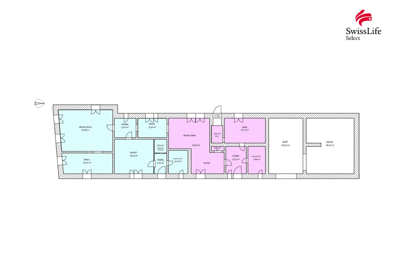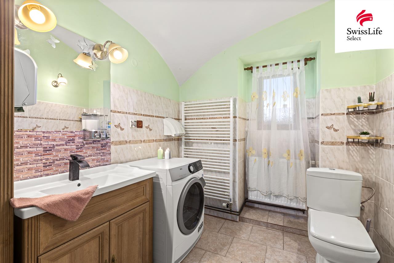 Všechny vnitřní prostory o celkové výměře 158 m² jsou účelně a prakticky uspořádané. Součástí domu je také garáž a kotelna. Nad celým domem, včetně garáže a technického zázemí, se nachází rozsáhlá půda o ploše 312 m², která nabízí jedinečný potenciál pro vybudování dalších bytových jednotek se samostatným vstupem z opačné strany domu.