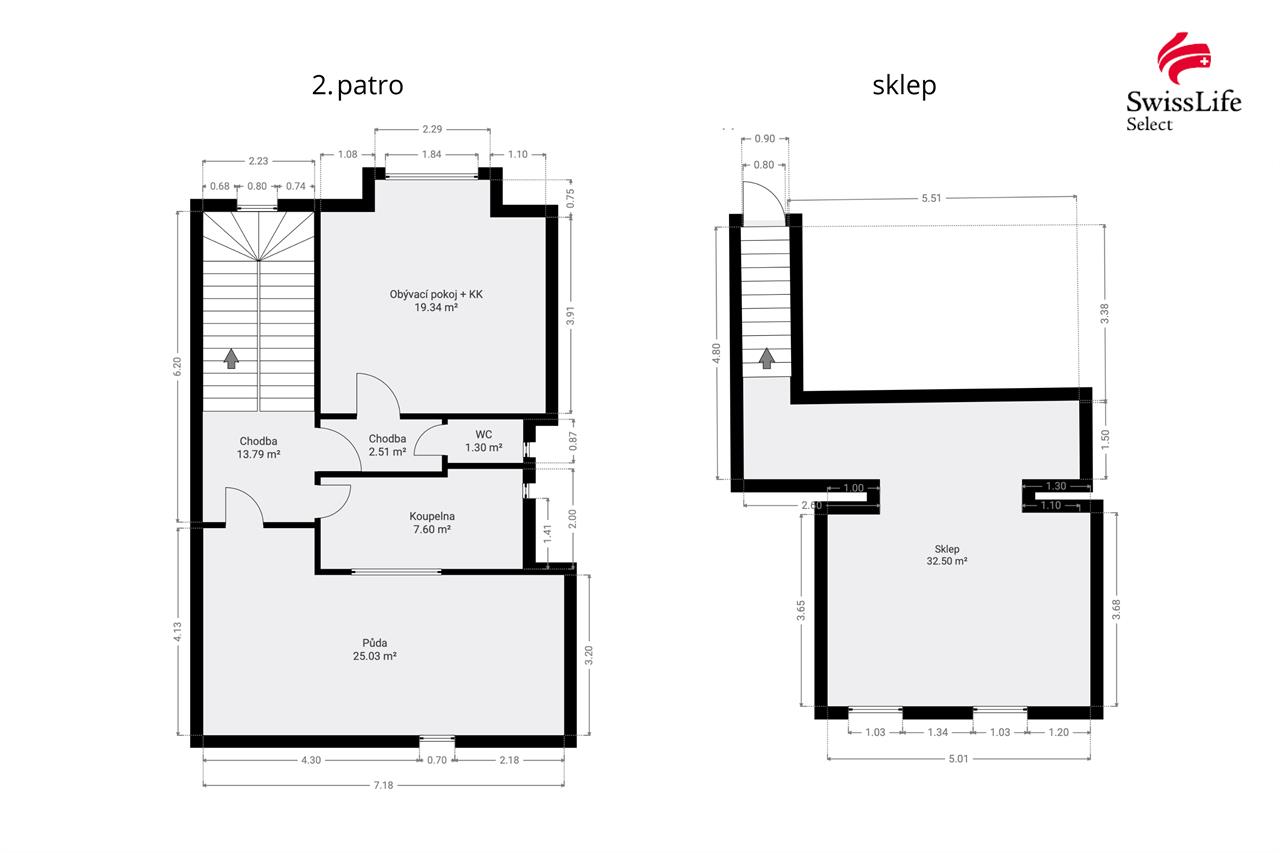 - 2. patro: 1kk (30,8m²) + navazující půda