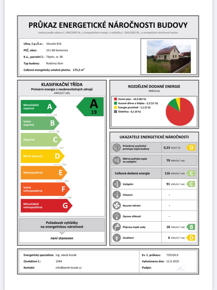 Třída energetické náročnosti budovy A - mimořádně úsporná