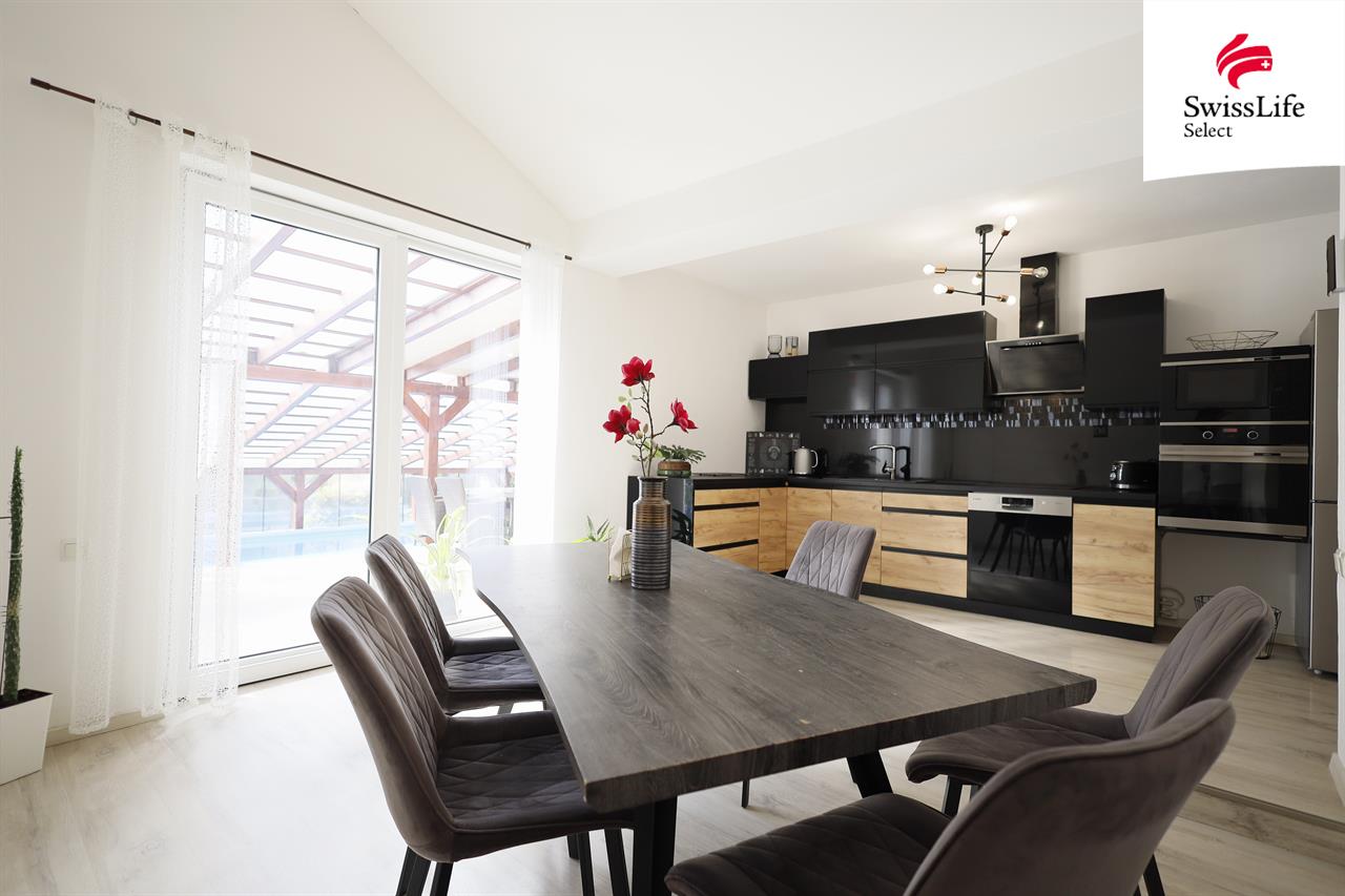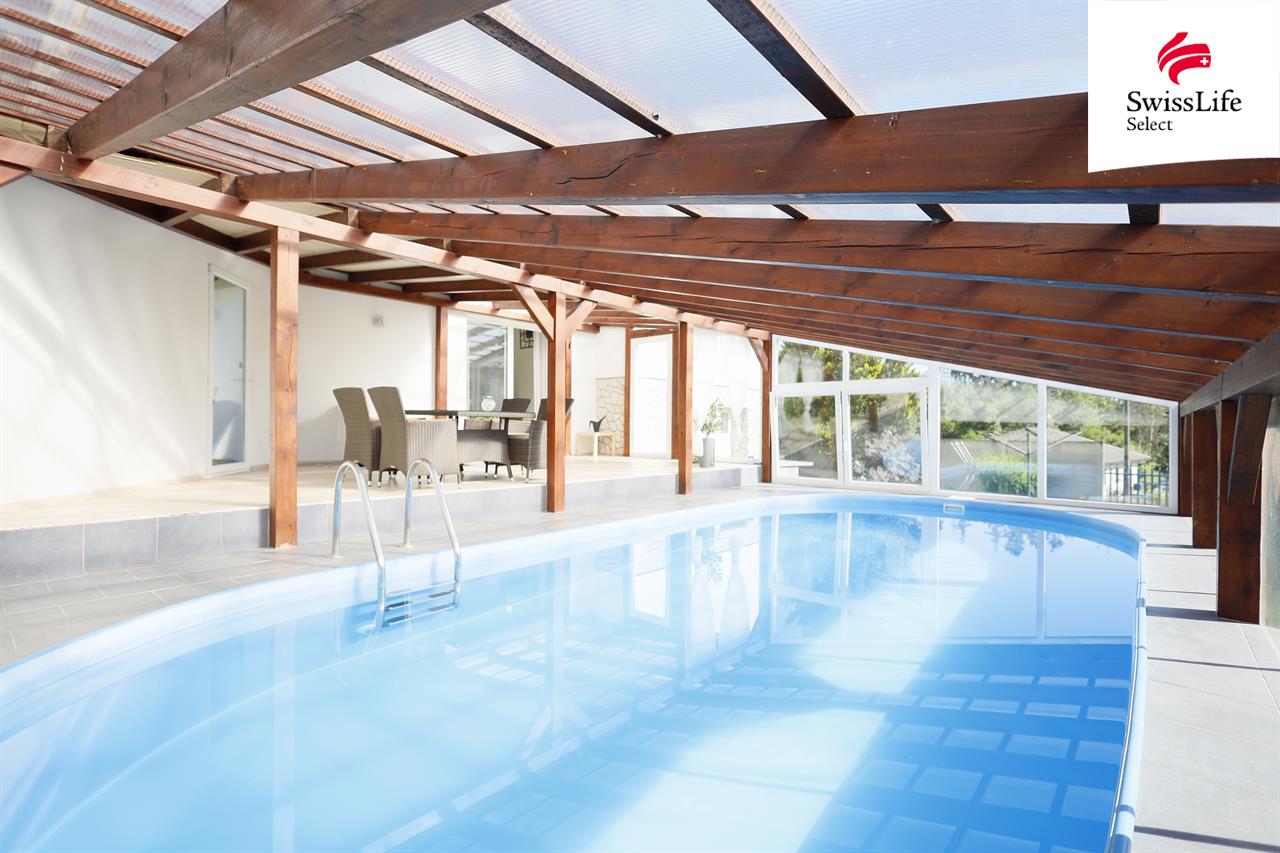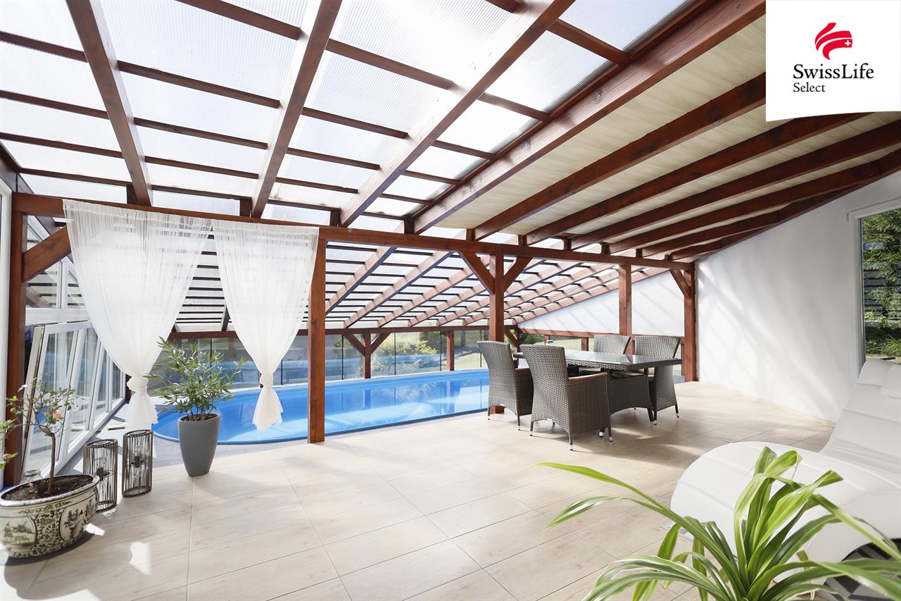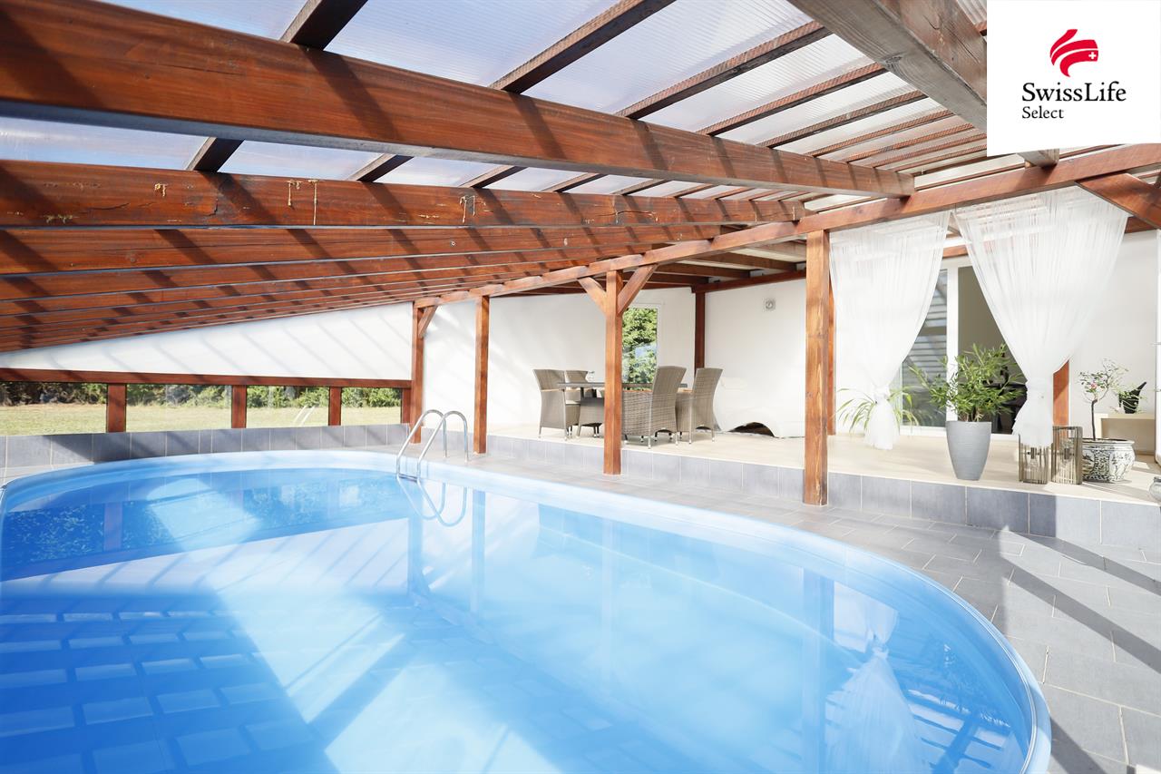 S potěšením Vám představuji nádherný rodinný dům, s prostornou zahradou a s velkým krytým bazénem, který je vyhřívaný tepelným čerpadlem. Tento moderní dům, kolaudovaný v roce 2001 představuje ideální domov pro rodinu, která hledá komfortní a klidné bydlení. Před třemi lety navíc prošel stylovou modernizací.