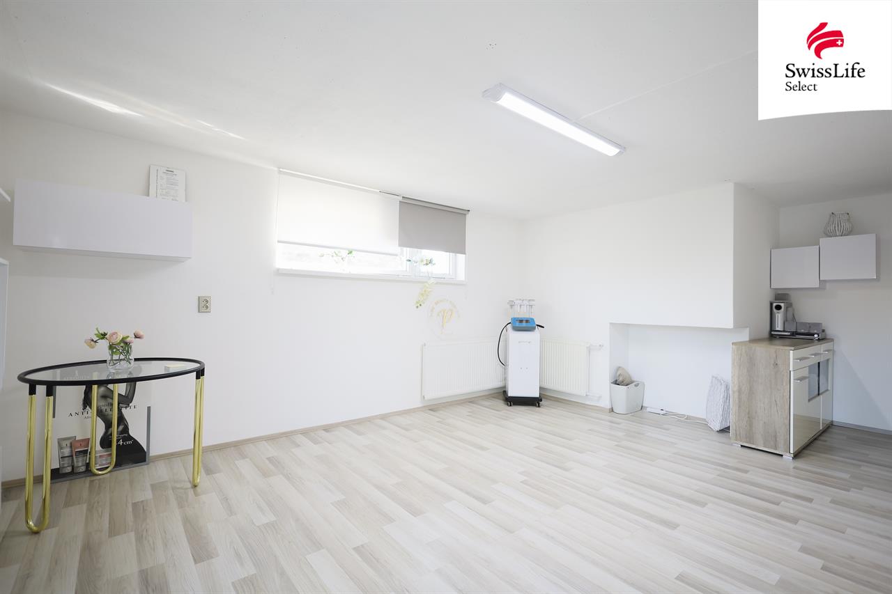 Ve sníženém přízemí se nachází prostorný ateliér s vlastním vchodem ze zahrady, dále sklep, kotelna se zplynovacím kotlem na dřevo, dostatkem prostoru na uložení dřeva a dveřmi z boku domu. Dále také prádelna se sprchovým koutem a východem do zadní části zahrady.