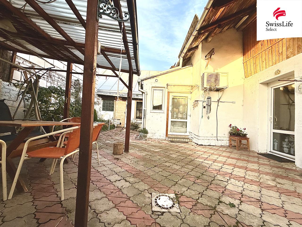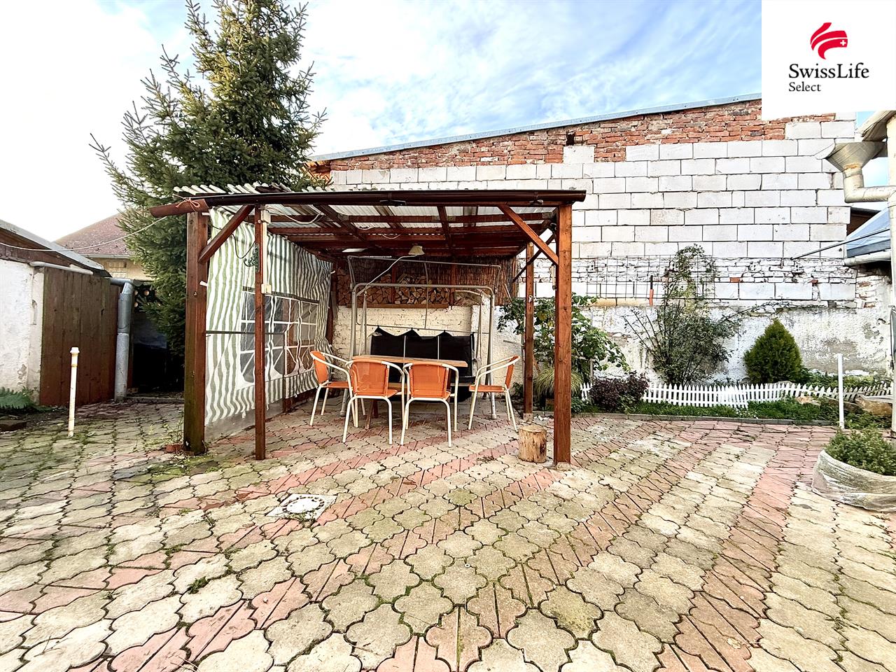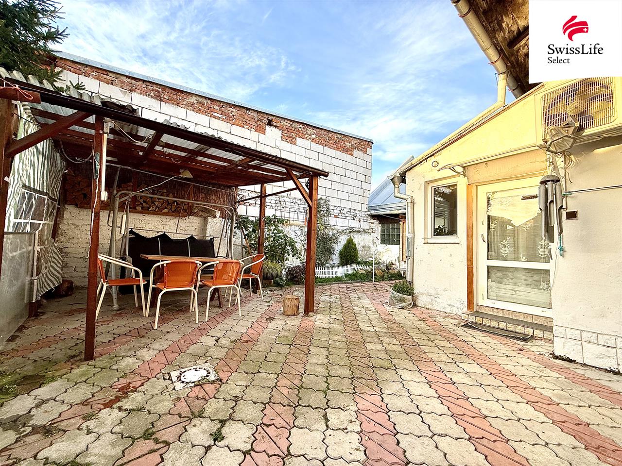 Za domem je uzavřený dvorek s příjemným posezením, které je ideálním místem pro relaxaci v teplých dnech nebo pro rodinné oslavy.