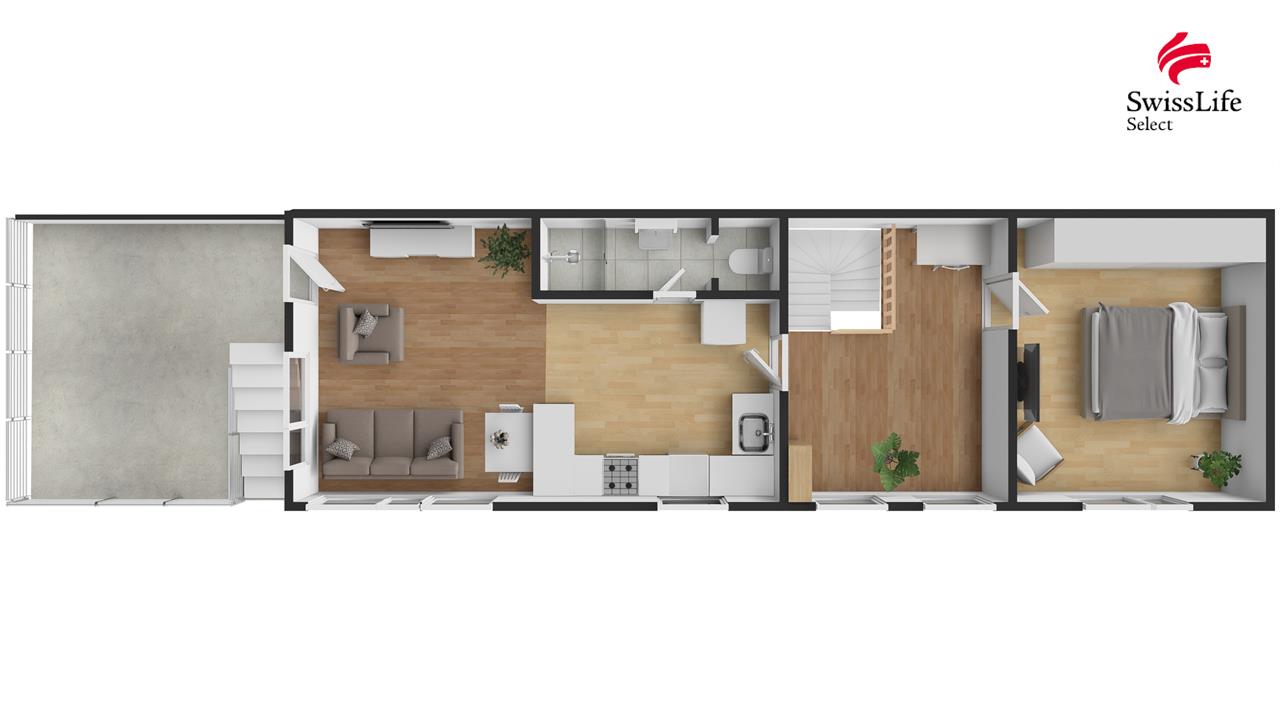 Dům má 2 nadzemní podlaží a obytnou bytovou plochu cca 82 m² s dispozicí 3kk a velkorysou halovou chodbou. RD nabízí příjemné rodinné bydlení včetně dvou koupelen, což zajišťuje dostatek komfortu. Z obývacího pokoje s kuchyňským koutem je přímý vstup na terasu, ideální pro posezení s rodinou či přáteli.