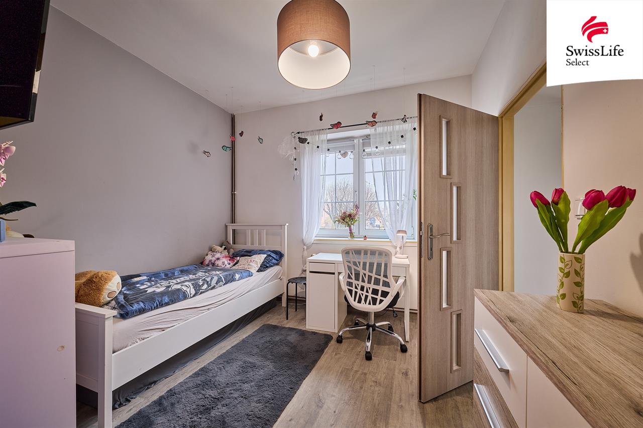V přízemí domu o ploše 119 m² se nachází prostorný byt dispozice 3+kk - zde proběhla částečná rekonstrukce a je možné se ihned nastěhovat. V 1. patře je možné vybudovat další obytný prostor o ploše 108 m². K dispozici je koupelna i potřebná dispozice místností, takže zde může vzniknout samostatná bytová jednotka. Patro je ke kompletní rekonstrukci.