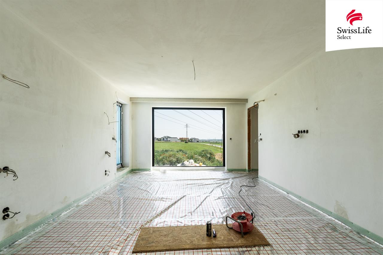 Pokud hledáte dům kousek od Prahy, který má pozemek pouze s jedním sousedem a je těsně před dokončením, tak čtěte dál.