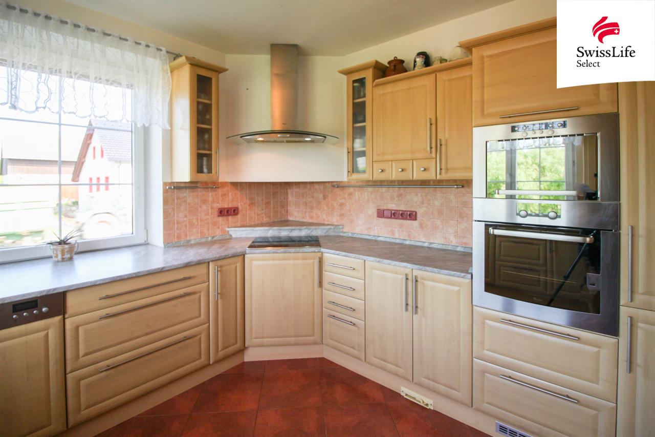 Nabízíme k prodeji rodinný dům o dispozici 5+kk s garáží, umístěný na prostorném pozemku o celkové výměře 2 099 m² v klidné obci Meziříčko u Měřína, v kraji Vysočina. Nemovitost byla zkolaudována v roce 2009 a nabízí komfortní bydlení s dostatkem prostoru jak v interiéru, tak v okolí domu. Dům je rozdělen do tří úrovní. V přízemí se nachází obytná zóna s propojeným obývacím pokojem, kuchyní a jídelním koutem, které tvoří jeden otevřený a funkčně uspořádaný celek. Po vstupu do domu je k dispozici šatna, která nabízí úložný prostor pro každodenní potřeby. Kuchyně je doplněna o praktickou komoru na potraviny. Na tomto patře se dále nachází samostatné WC a koupelna. V horním podlaží je umístěna prostorná ložnice se šatnou, tři další samostatné pokoje, které mohou sloužit jako dětské pokoje, hostinské místnosti nebo pracovny, a další samostatná koupelna a toaleta. Nachází se zde také samostatná pracovna, která poskytuje klid pro práci z domova. Sklepní část domu je velmi praktická a členitá – najdeme zde garáž, dílnu, prádelnu, kotelnu s uhelnou a potravinový sklep. Dům je vytápěn tuhými palivy, je napojen na vlastní studnu a vybaven domovní čističkou odpadních vod, což snižuje závislost na inženýrských sítích a přispívá k dlouhodobě udržitelnému provozu domácnosti. Pozemek obklopující dům poskytuje dostatek soukromí, prostor pro zahradničení i případné hospodářské využití. Celkový charakter nemovitosti osloví především ty, kteří hledají bydlení v klidném venkovském prostředí s rozumným dojezdem do větších měst a napojením na dálnici D1 – do Velkého Meziříčí je to zhruba 10 minut jízdy, Jihlava i Brno jsou dobře dostupné. Obec Meziříčko se nachází v oblasti Českomoravské vrchoviny a je obklopena lesy, loukami a rybníky, které jsou ideální pro volnočasové aktivity – turistiku, cyklistiku i houbaření. V nedalekém Měříně najdete základní občanskou vybavenost – školu, školku, obchody i zdravotnická zařízení. Za návštěvu v širším okolí stojí například zámek ve Velkém Meziříčí, poutní místo Křižanov, rozhledna na Fajtově kopci nebo barokní památky v Třebíči, která je zapsána na seznamu UNESCO. Tato nemovitost je vhodná pro rodinné bydlení nebo jako víkendové sídlo pro ty, kteří hledají dostatek prostoru a klid mimo městský ruch, ale zároveň nechtějí být zcela odříznuti od služeb a dopravního spojení. Swiss Life Select a.s. Vám nabízí možnost vypracování nezávislého porovnání a tvorby hypotéky na míru dle Vašich požadavků a možností. Díky exkluzivním podmínkám u finančních institucí, perfektní znalosti trhu a kvalitnímu klientskému servisu se můžete spolehnout, že Vám doporučíme nejlepší financování Vaší nemovitosti a pomůžeme vyřídit veškeré náležitosti. Pro více informací kontaktujte makléře.