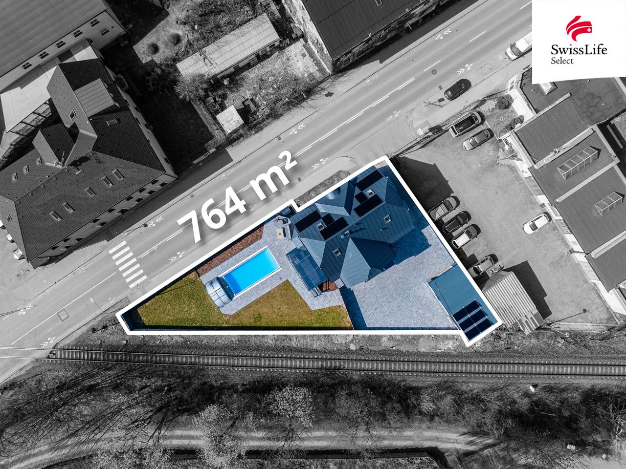 Na pozemku o výměře 764 m² najdete prostornou garáž s nabíječkou pro elektromobil. Dominantou venkovního prostoru je vyhřívaný bazén se zastřešením a navazující terasa se vstupem na zahradu, která přímo vybízí k relaxaci a pohodovému trávení času.