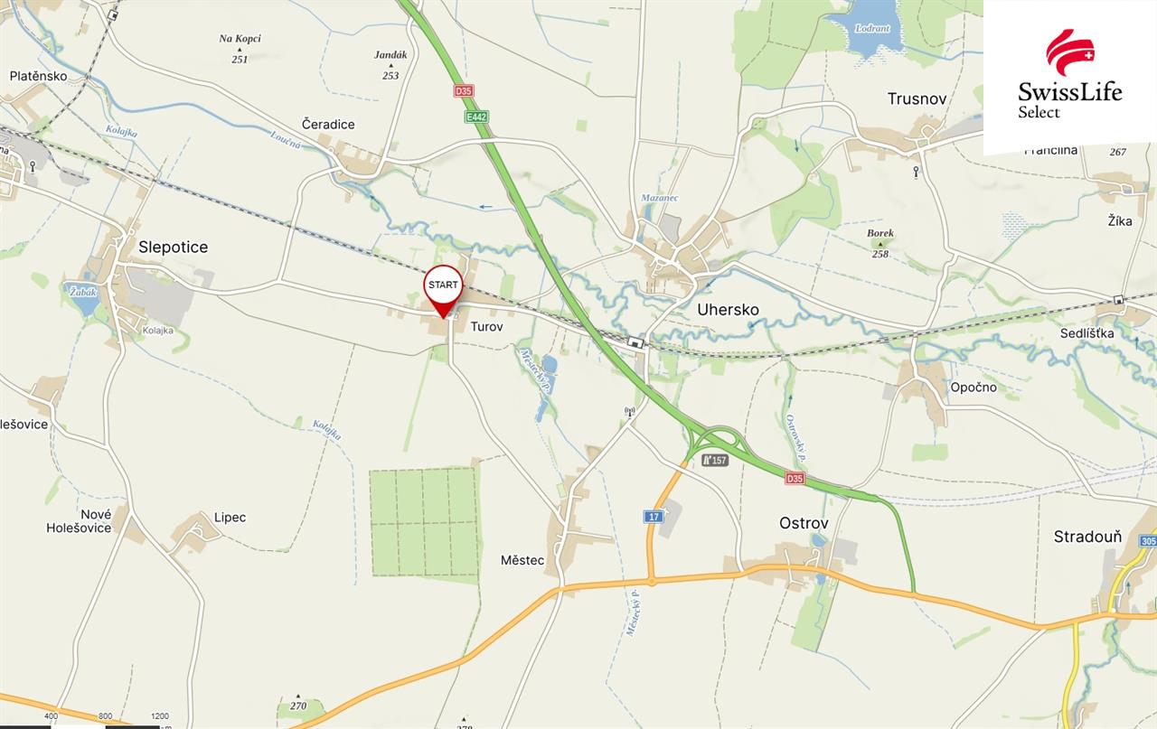 Dům se nachází v obci Turov, která spadá pod obec Moravany v dojezdové vzdálenosti 5 minut od nájezdu na D35.