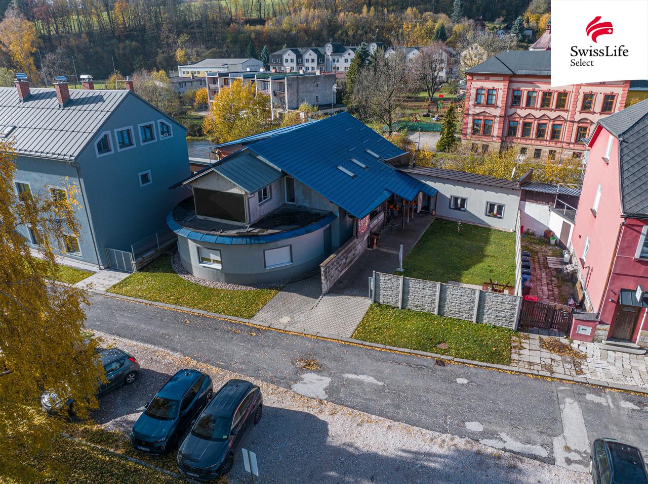 Na druhém pozemku se nachází samostatný apartmánový dům – 1+1 o výměře 30 m². Celková plocha domu je přibližně 703 m² a pozemky o celkové výměře 800 m².