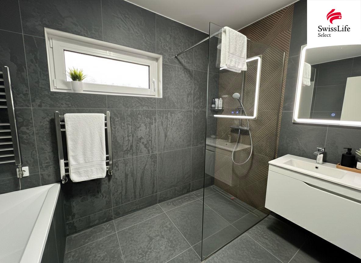 Budoucí majitel má navíc možnost ovlivnit finální podobu interiérových standardů (podlahy, obklady, dveře, sanita) dle vlastního vkusu.