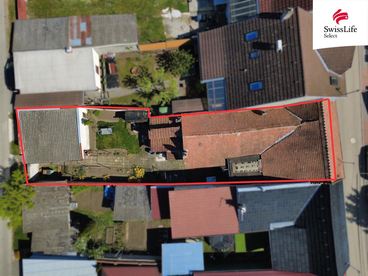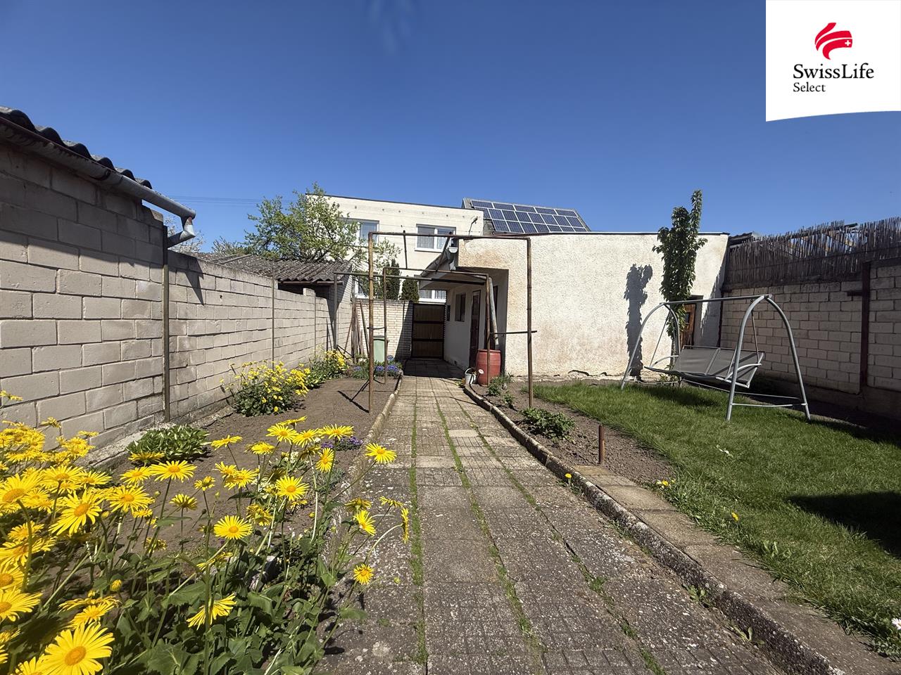 Garáž a uzavřený dvorek poskytující soukromí a komfort.