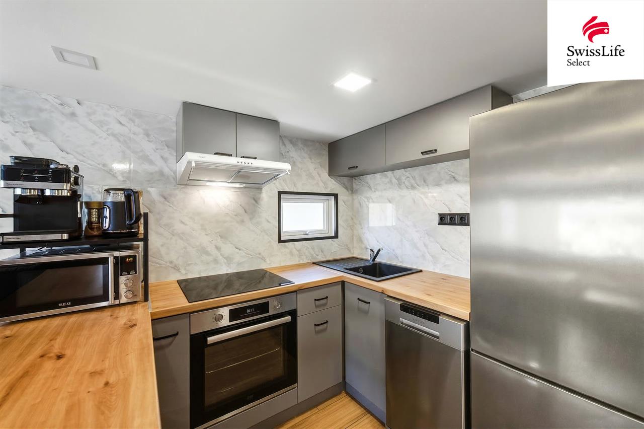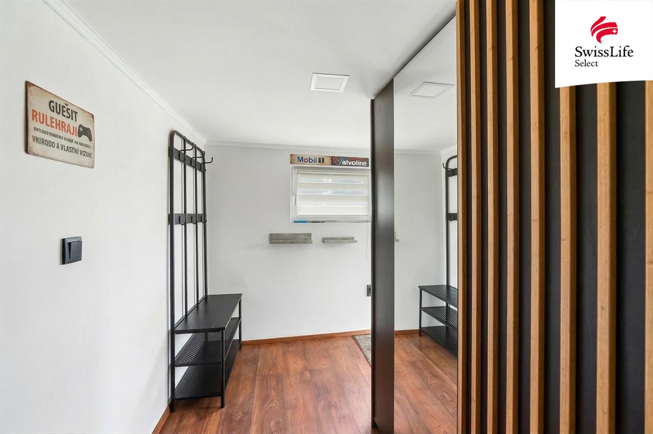 Součástí pozemku je obytná jednotka o dispozici 3+1 (cca 70 m²), která vznikla úpravou mobilního domu a je plně funkční k bydlení.
