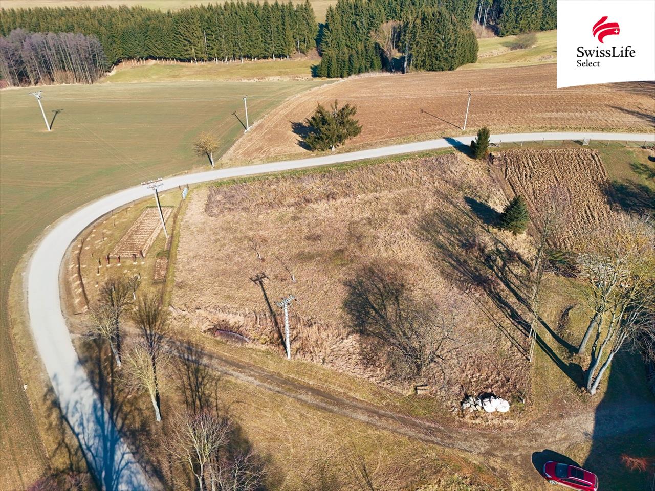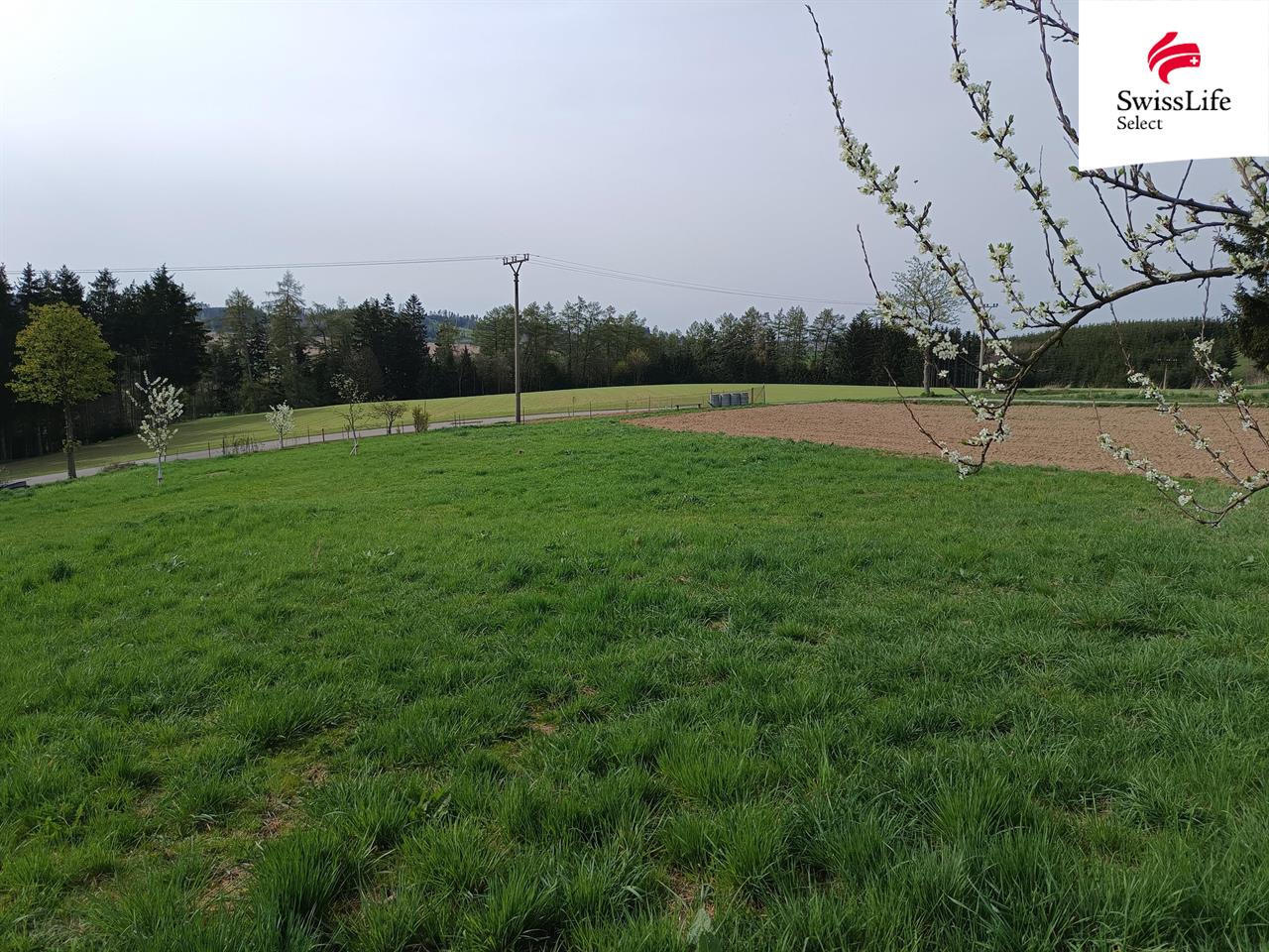 Elektřina je vedena v blízkosti pozemku.