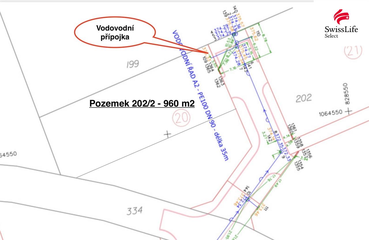 Pozemek připraven na okamžité užívání. Na hranici pozemku vodovodní přípojka, elektroměrový a plynoměrový pilíř. Vjezd z východní strany pozemku.