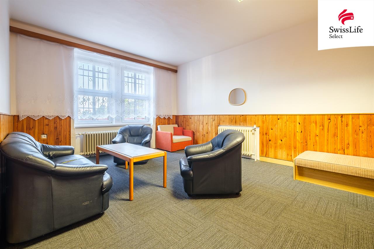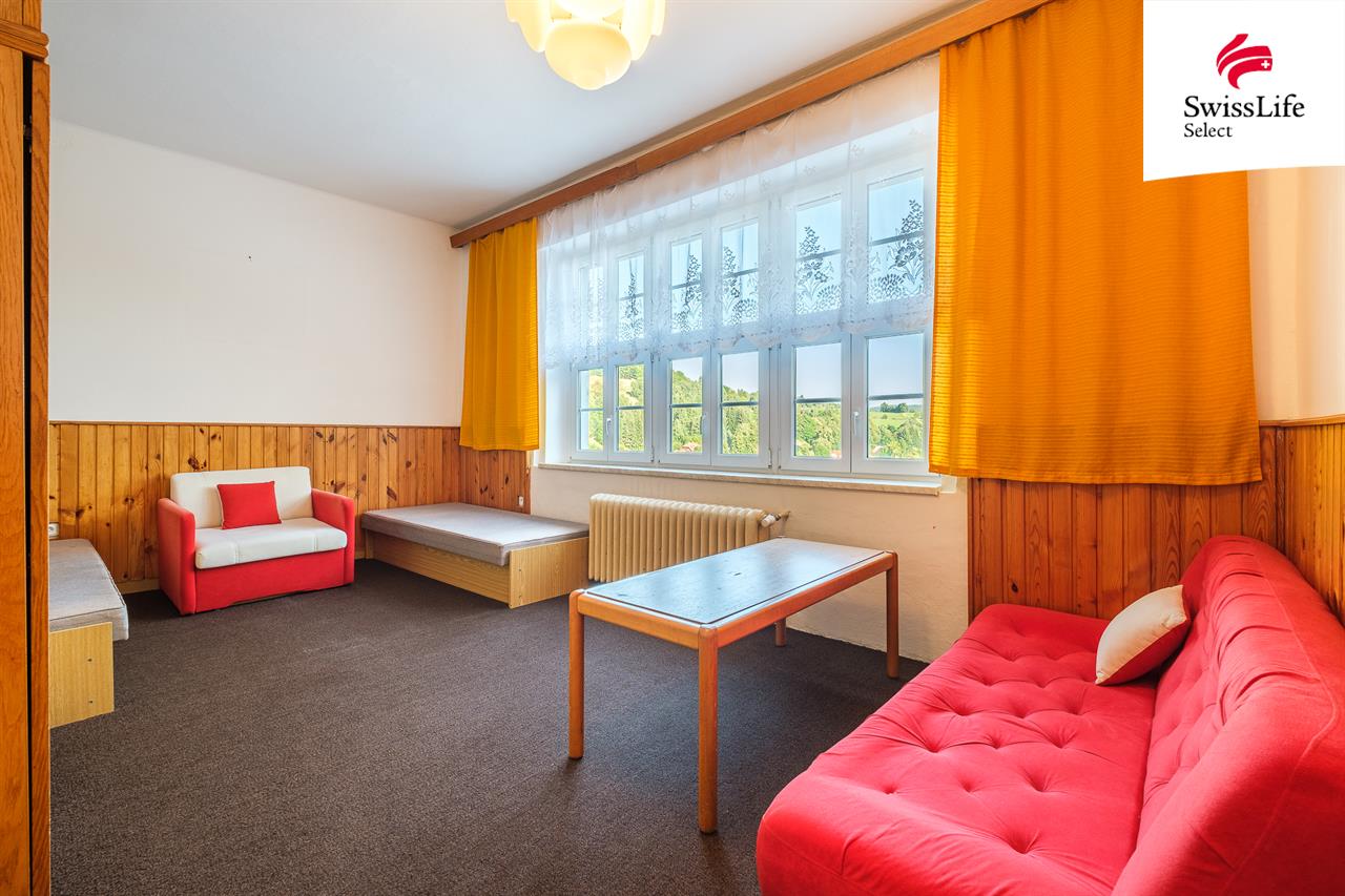 Prodej rekreačního zařízení s vlastním pozemkem, parkováním, garáží a samostatně stojící dřevěnou chatou v okrajové části lázeňského městečka Jáchymov. Objekt byl do konce roku 2022 využíván k podnikové rekreaci. Poslední velká rekonstrukce rozvodů proběhla v 60tých letech minulého století. Po r. 2000 byla vyměněna okna. Průběžná údržba je zajištěna. Hlavní - z větší části podsklepená budova - má dvě nadzemní podlaží a obytné podkroví. Vytápěna je ústředním topením napojeným na dva plynové kotle umístěné v suterénní kotelně. Voda je obecní, odpady jsou svedeny do kanalizace. V deseti různě velkých pokojích lze ubytovat až 36 hostů. V přízemí je vstupní hala, kuchyně se zázemím, velká jídelna, salonek, kancelář, recepce a hala se schodištěm do dalších pokojů. Z těch orientovaných na jihozápadní stranu je nádherný výhled do údolí. Na obou vyšších podlažích jsou společné koupelny a toalety.