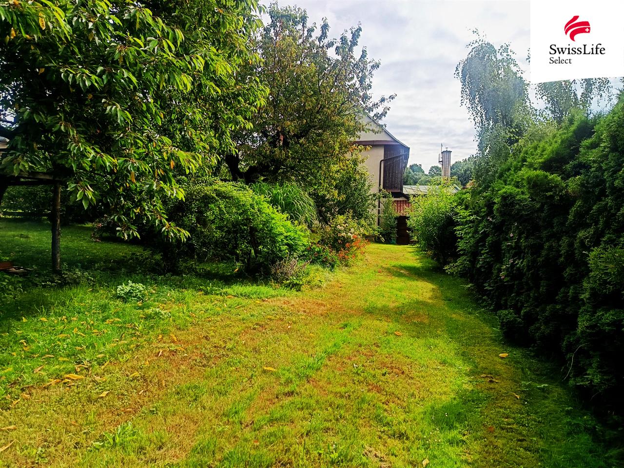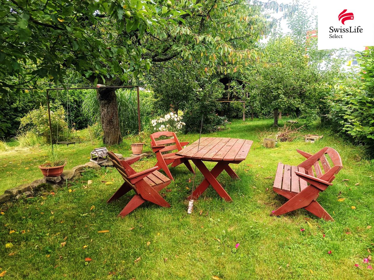 Udržovaná zahrada (celková plocha pozemku 959 m²) je osázená ovocnými a okrasnými stromy, keři a bylinkovým záhonem. Součástí zahrady je dětský stromový domek, zahradní domek a sklad s dílnou. Prostředí nabízí klid, soukromí a pohodu zejména v letních měsících.