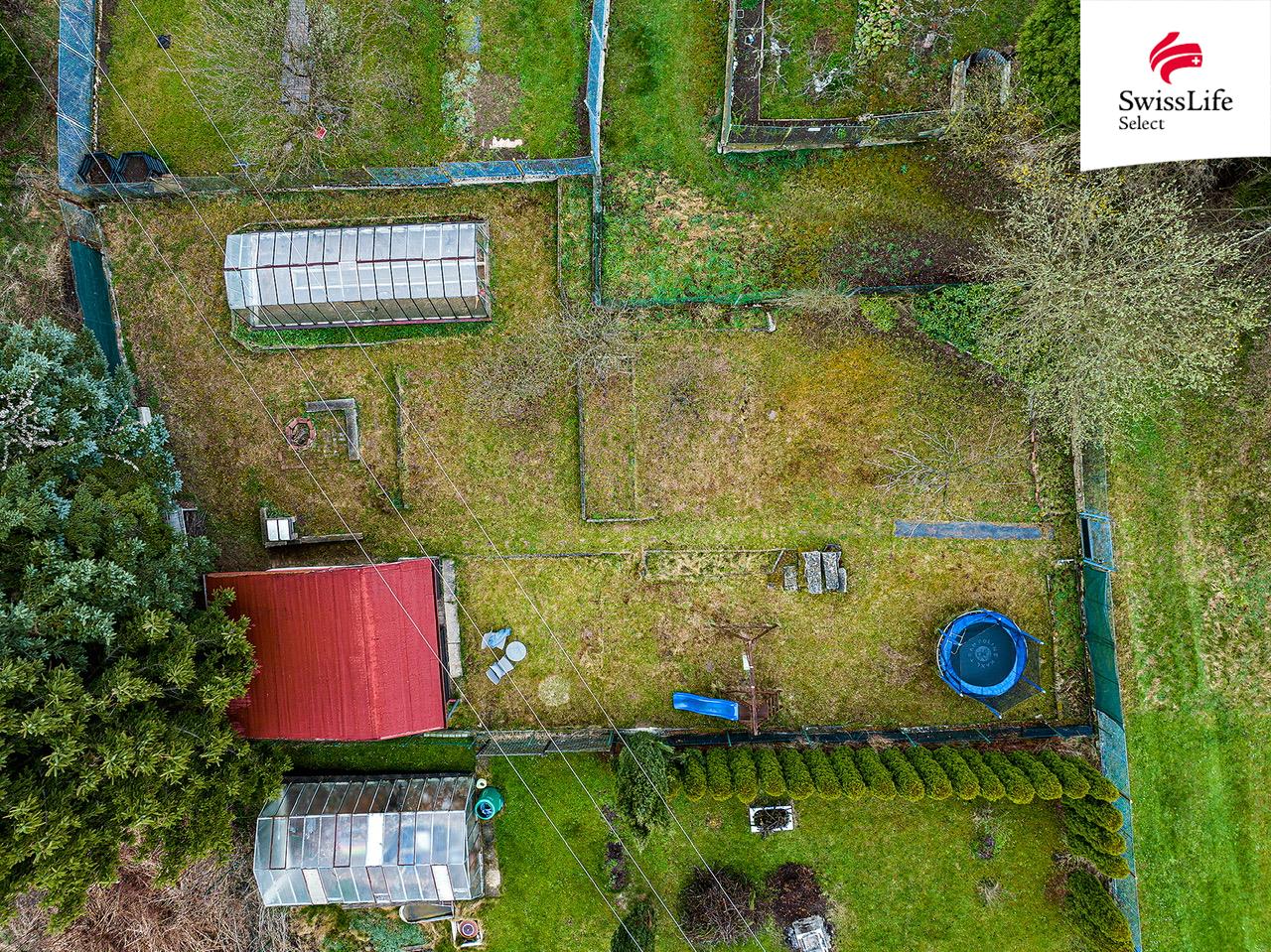 Najdete tu rovinatý pozemek se záhony, skleník, kompostér, suché WC a sezónní vodu. Elektřina zde není, ale díky tomu, že zde slunce svítí po celý den, nabízí se možnost řešit energii vlastní fotovoltaikou a vytvořit si tak soběstačné zázemí. Klid a soukromí jsou samozřejmostí. Do centra dojdete pěšky za cca 15 minut, MHD je